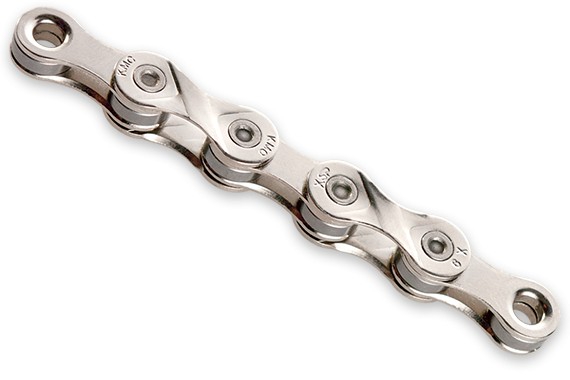 KMC X9 chain 9 gears 114 links Nickel surface Works both ways Suitable for all 9-speed gear systems With chain lock Weight: 277 g (110 links)