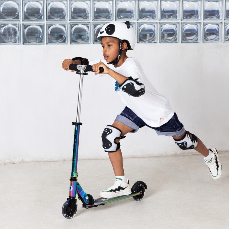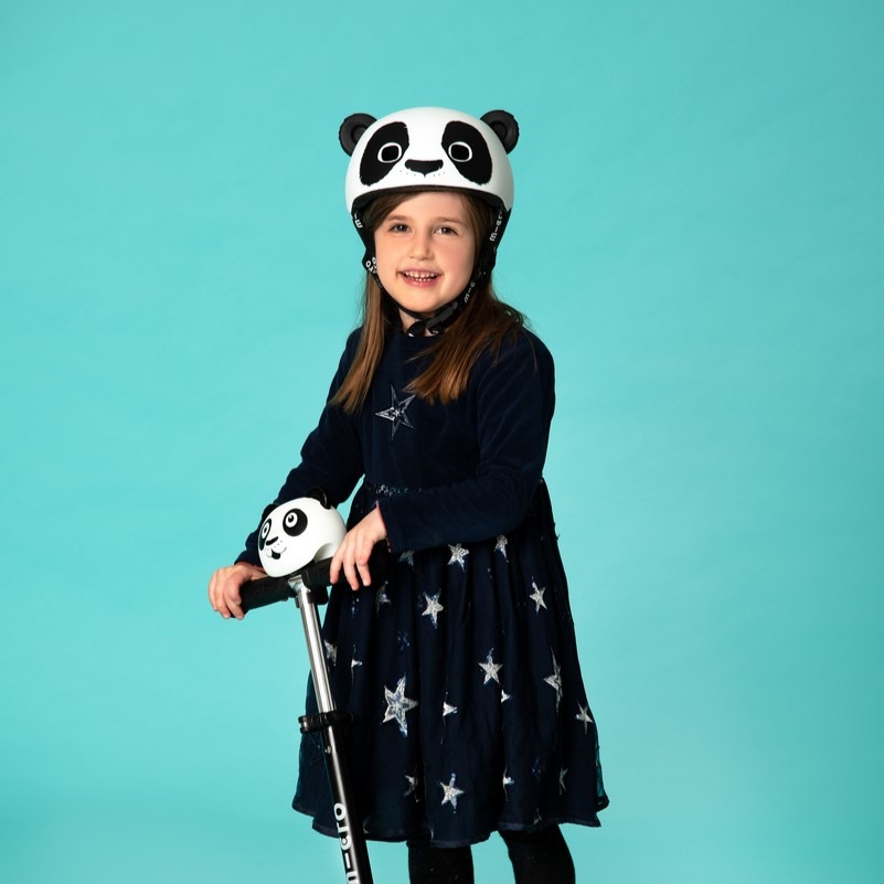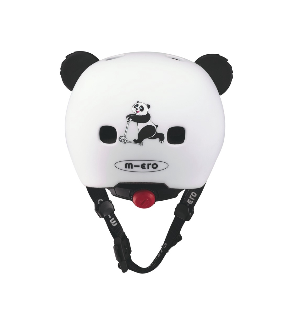 Micro 3D Panda children's helmet combines cool design and safety! The helmet is adjustable, has extra padding, an innovative easy-to-close magnetic fastener and a red LED light.