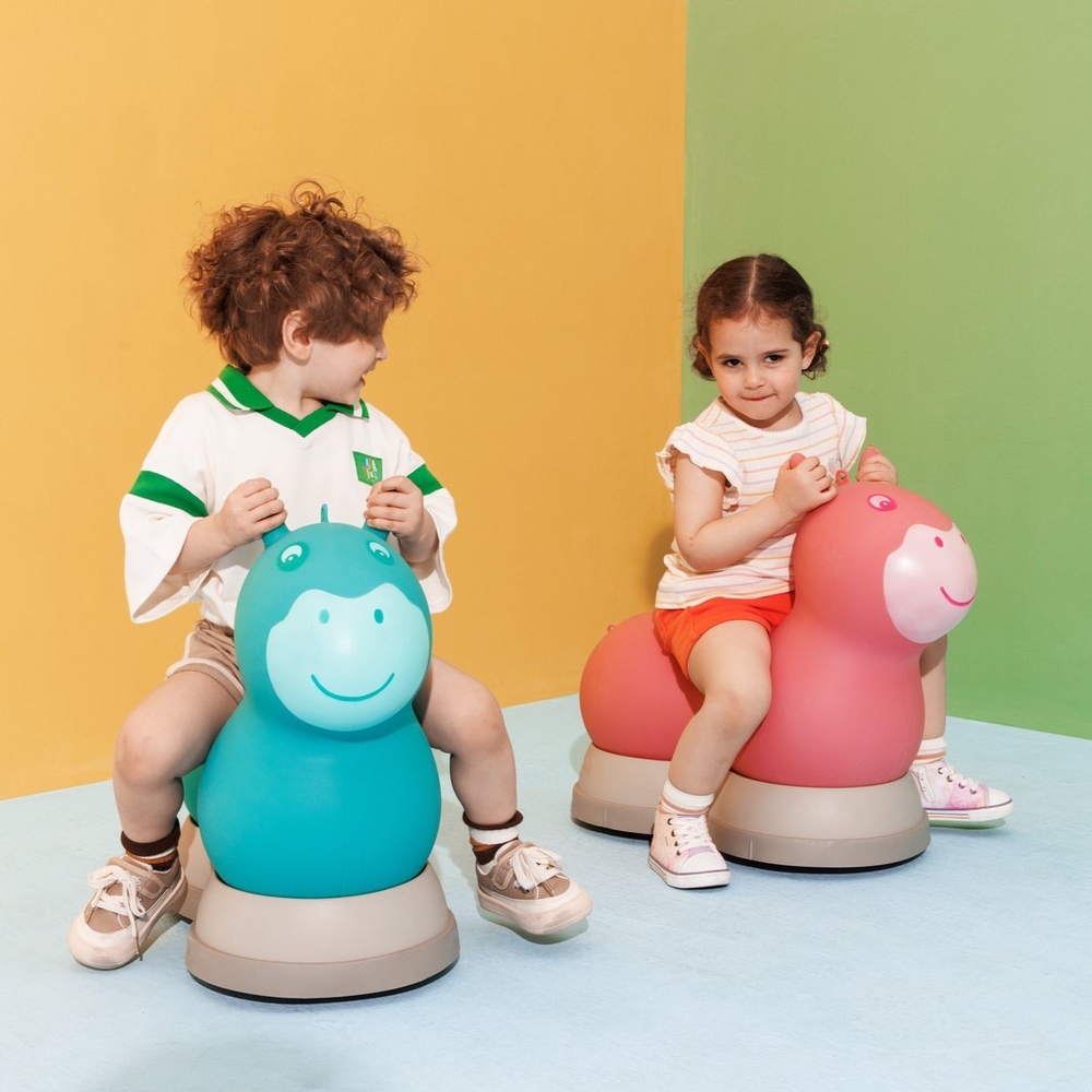 An ergonomically designed bouncing ball on wheels, developed in collaboration with Swiss medical professionals specifically for the development of toddlers and preschoolers.