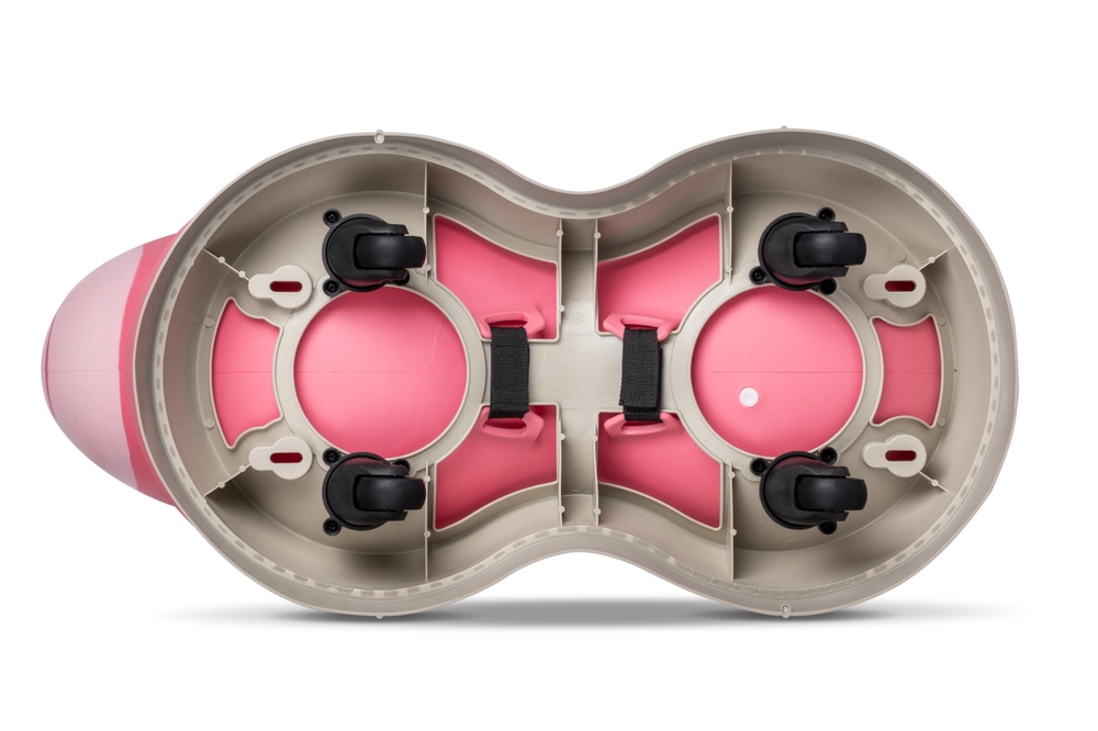 Micro Air Hopper is an ergonomically designed bouncing ball on wheels with 360-degree rotating wheels that are exceptionally quiet and leave no marks on the floor. Its inflatable base is removable, so children can also use it as a regular bouncing ball. The ball can be filled with more or less air, depending on the size of the child, to make it as safe and comfortable as possible.