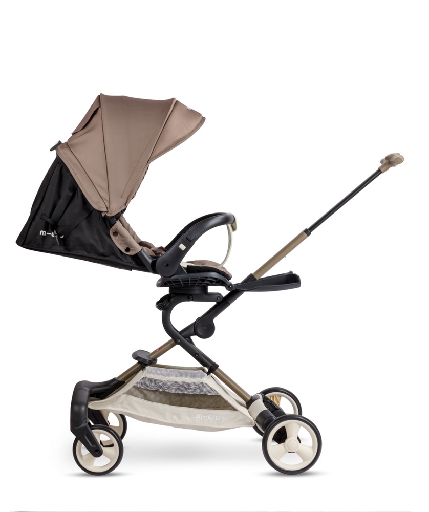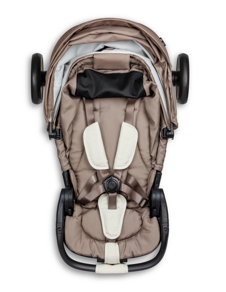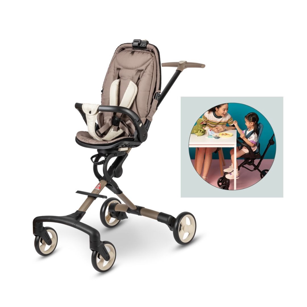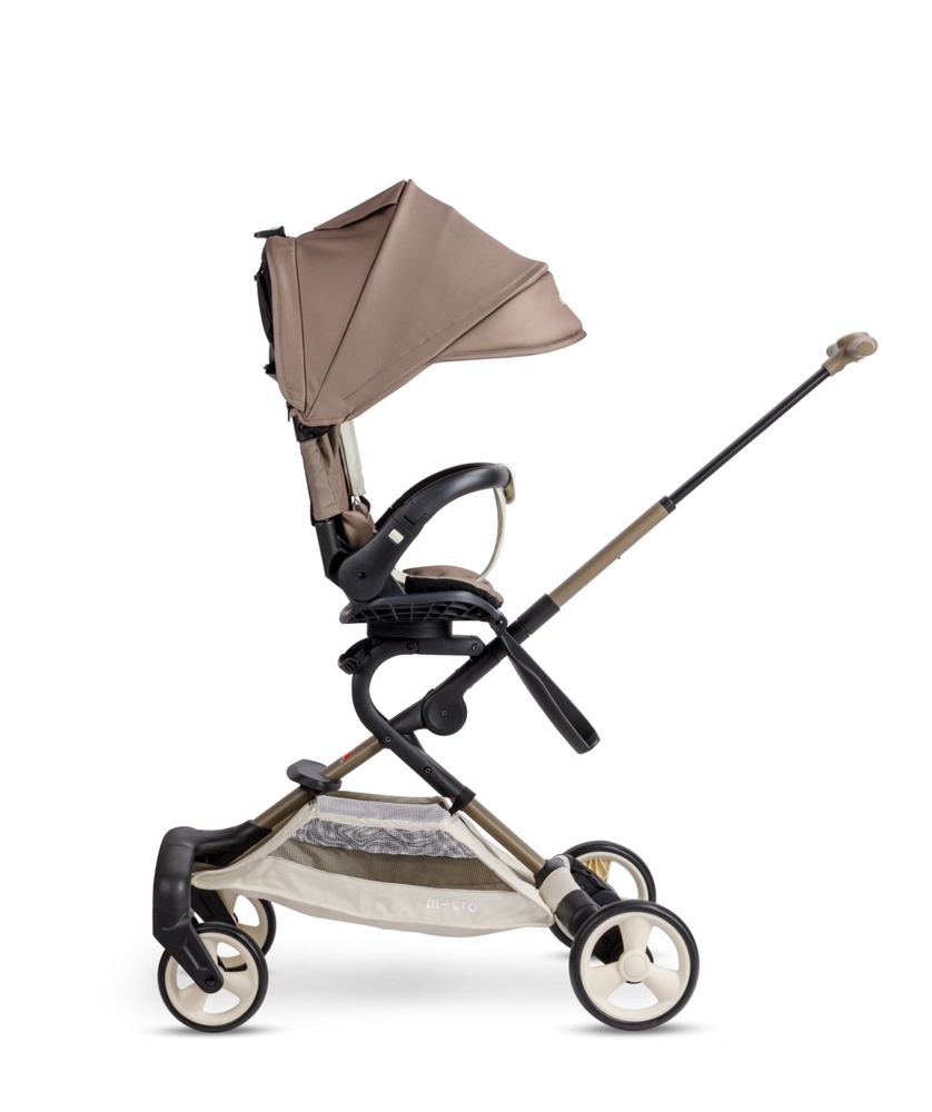 The Micro Baby Cruiser 360 is an extremely comfortable and modern stroller for parents who value functionality. Its four-position backrest and 360° swivel seat allow the stroller to be used comfortably anywhere, even as a high chair, e.g. when dining out at a restaurant. The Micro Baby Cruiser 360 ensures a comfortable and safe stroll. It has a top-of-the-line five-point safety harness and a touch-sensitive foot brake. The stroller can be easily folded without the need for tools. The rear wheel suspension and 360° swivel front wheels ensure smooth maneuvering on different terrains. The front wheels with built-in LED lights increase visibility and ensure safe movement. The LED lights on the wheels light up when the stroller is in motion thanks to a dynamo mechanism, so no batteries or rechargeable batteries are required. The 360° rotating ergonomic seat allows small children to maintain safe eye contact with their parents while traveling in the direction of travel. If necessary, the seat can be turned to face forward, allowing the child to discover the world while traveling. When folded, it fits nicely in the trunk of a car and does not take up much space when stored at home. It is very suitable for taking on trips. Age: from 6 months Weight: 7.3 kg Maximum load capacity: 15 kg Handle height: 93.5 cm Wheels: 15.24 mm / 17.7.8 mm Top-of-the-line five-point safety harness Removable canopy with UPF 50+ sun protection Backrest with four positions (98°, 115°, 125°, 152°) Can be used as a baby seat 360° swivel seat Rear wheel suspension and 360° swivel front wheels Folds and unfolds in seconds Storage basket under the stroller for carrying items
