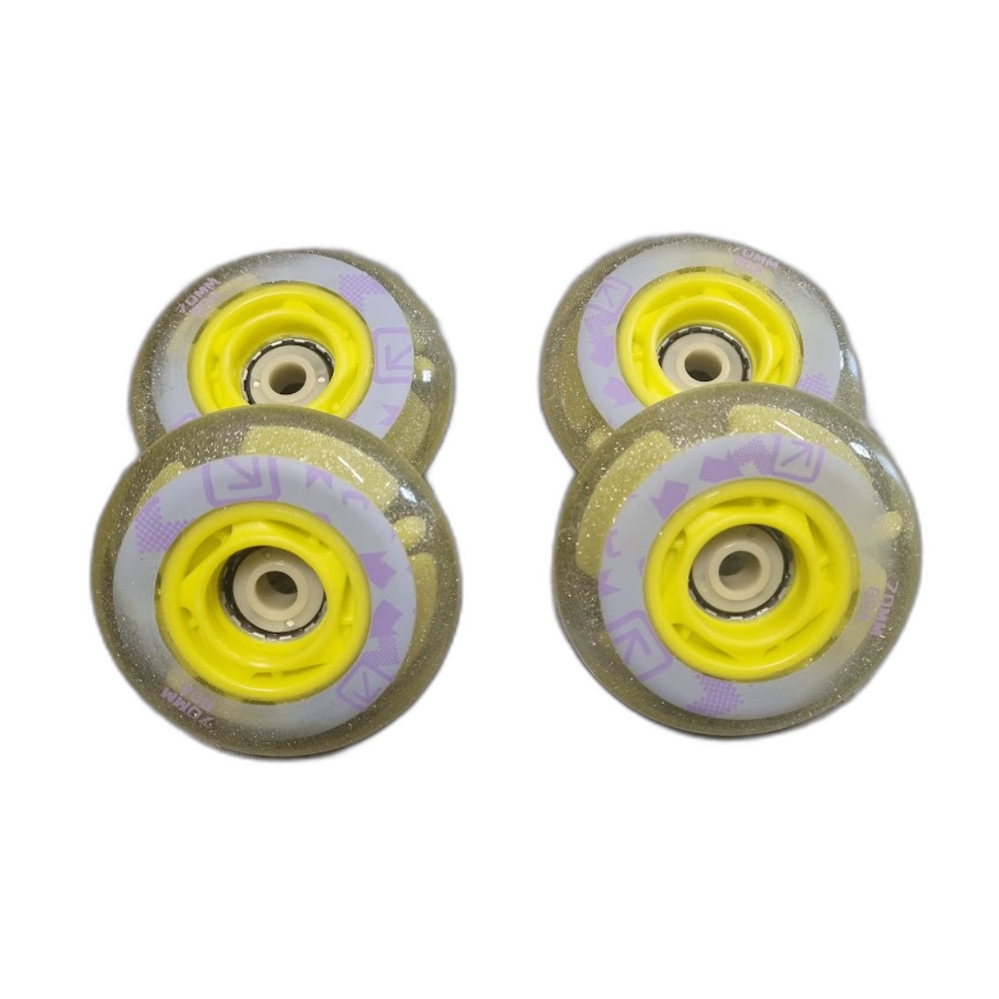 Roller skates with effective LED lights that make the skater more visible in the dark and increase their safety. The LED lights turn on when the wheels rotate, so the wheels light up while skating. The set includes 4x70mm LED wheels (80A).