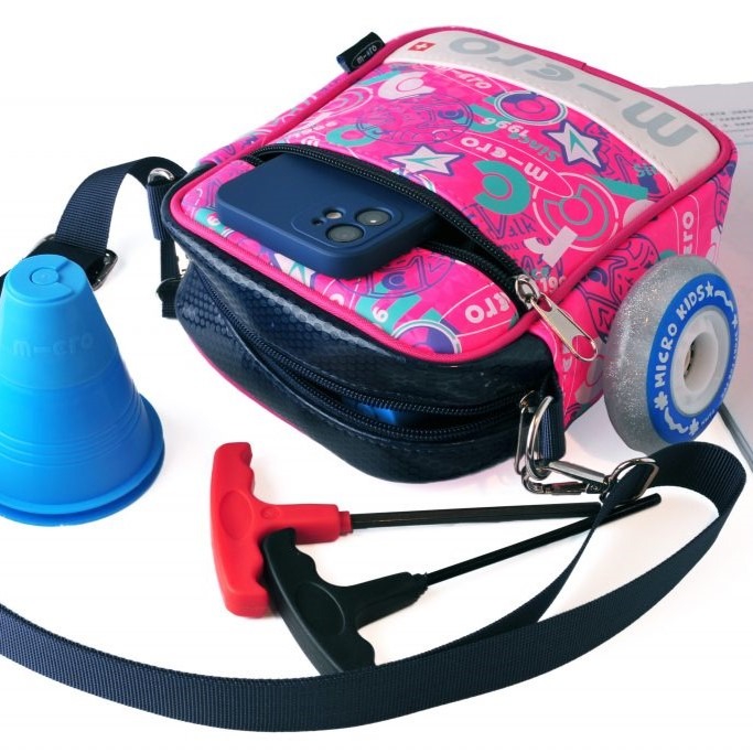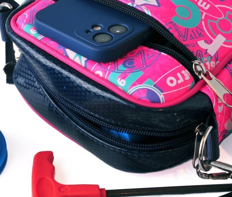 A small, brightly colored bag for carrying your cell phone and other small essentials. Bag dimensions: 20 x 18 x 7 cm
