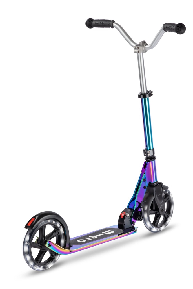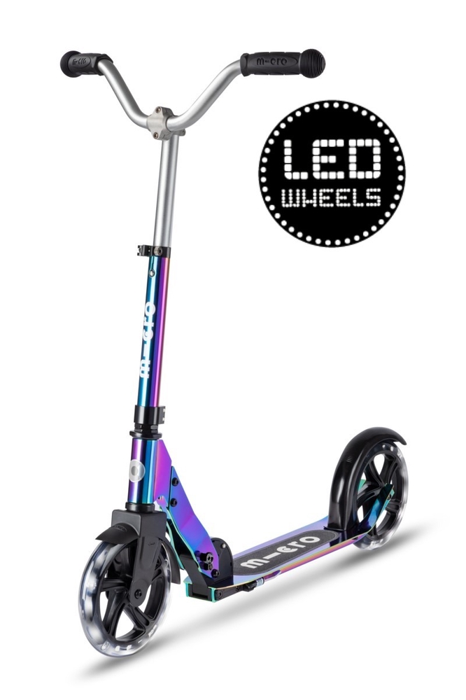 Micro Cruiser LED neochrome tõukeratas on Cruiseri täiendatud versioon, millel on lisaks kõigile tavapärastele Cruiseri omadustele LED tuledega rattad ja silmapaistev neokroomne viimistlus. See spetsiaalne kate loob ainulaadse värvimuutuse efekti, mis varieerub sõltuvalt valgustingimustest. LED tuledega rattad muudavad lapse pimedas nähtavamaks ja sõidu lapse jaoks efektsemaks!