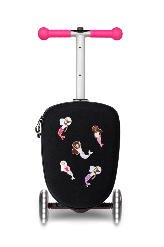The handlebar of the Micro Luggage Junior scooter is adjustable to three heights. This allows the scooter to grow with your child (a handlebar that is too low can make riding dangerous for your child). The innovative folding system is safe and user-friendly. The scooter has a unique patented steering mechanism, which means that in addition to steering with the handlebar, it can also be steered by leaning your body weight. This ensures better balance and smoother movement for small children. The Micro Luggage Junior LED lights on the wheels light up when the scooter is in motion thanks to a dynamo mechanism, so there is no need for batteries or rechargeable batteries. The LED lights make the child more visible in the dark and make riding more exciting for the child! With this scooter, you’ll shine like a star!