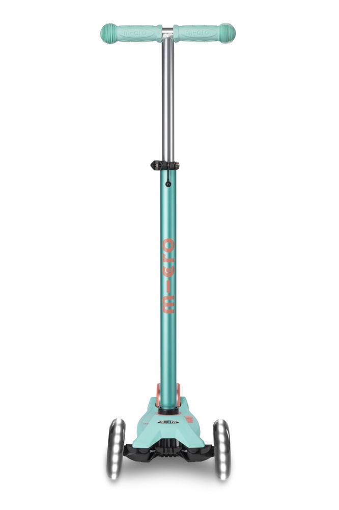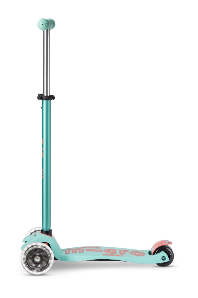 Micro Maxi Deluxe is the most popular and recommended three-wheeled scooter for children aged 5-12. It is designed for children who have outgrown the Mini Deluxe version but are not yet ready to ride a two-wheeled scooter. The Maxi Deluxe scooter is designed for older children, which is why it has a larger footboard than the Mini version and the handlebar can be adjusted to a significantly higher position. The lowest position of the Maxi Deluxe handlebar is similar to the highest position of the Mini version handlebar. The Micro Maxi Deluxe LED scooter is an upgraded version of the Maxi Deluxe model, which, in addition to all the usual Maxi Deluxe features, has two LED lights on the front wheels. The wheels light up when the scooter is in motion thanks to a dynamo mechanism, so there is no need for batteries or rechargeable batteries. The LED wheels make your child more visible in the dark and make riding more exciting for them! With this scooter, you'll shine like a star! The scooter encourages children to get out into the fresh air, helping to develop their balance, coordination, and motor skills. Micro scooters have been developed in collaboration with Swiss medical professionals and designed to support child development.