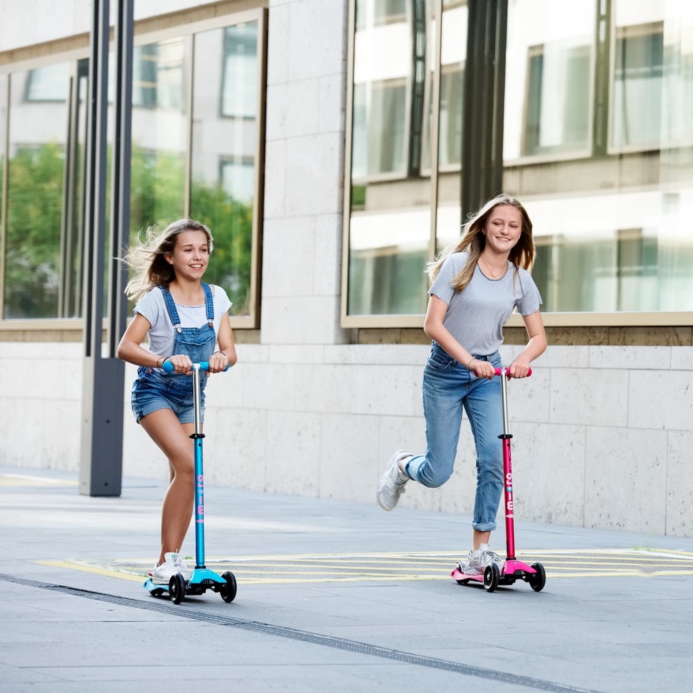 Micro Maxi Deluxe is the most popular and recommended three-wheeled scooter for children aged 5-12. It is designed for children who have outgrown the Mini Deluxe version but are not yet ready to ride a two-wheeled scooter. The Maxi Deluxe balance bike is designed for older children, which is why it has a larger footboard than the Mini version and the handlebar can be adjusted to a significantly higher position. The lowest position of the Maxi Deluxe handlebar is similar to the highest position of the Mini version handlebar. The scooter encourages children to get out into the fresh air, helping to develop their balance, coordination, and motor skills. Micro scooters have been developed in collaboration with Swiss medical professionals and designed to support child development. Every detail has been carefully considered and only the best materials have been used. Micro scooters have been thoroughly tested to make them as safe and comfortable as possible for children to use.