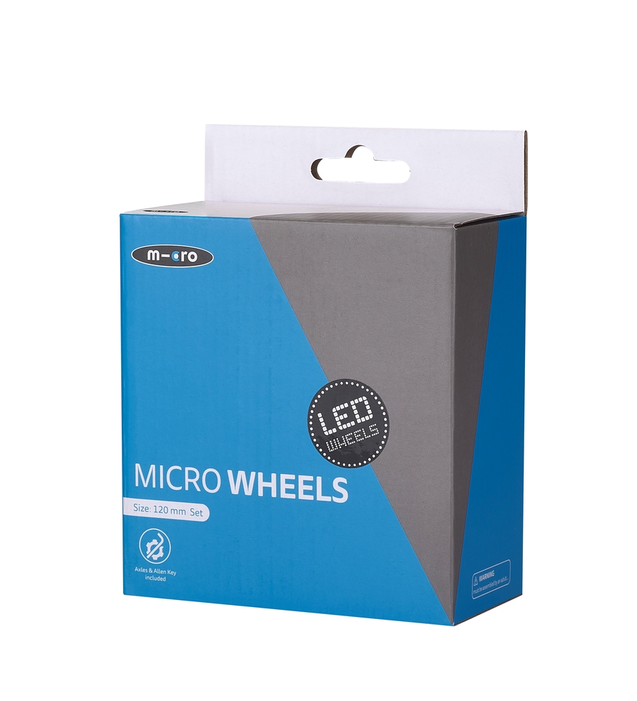 Front wheels with LED lights for Micro Maxi Classic and Deluxe scooters, diameter 120 mm. The set includes two LED wheels.
