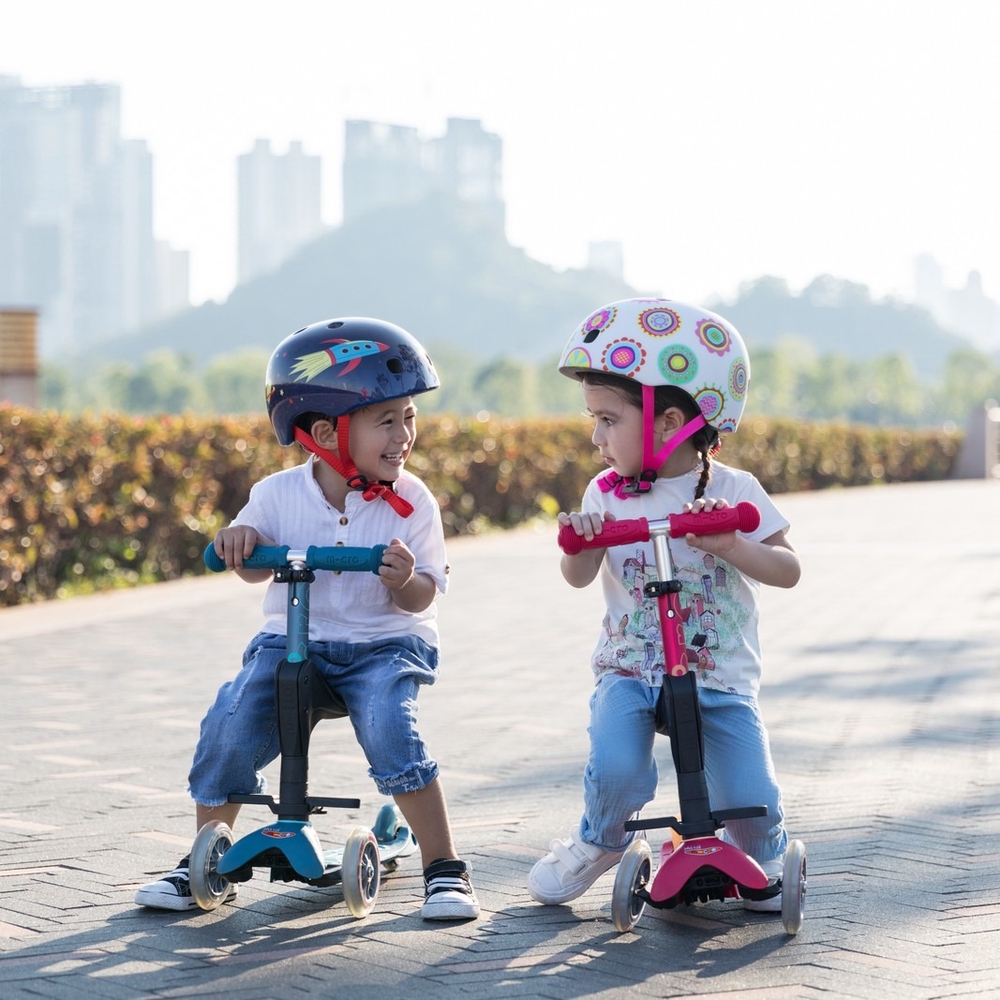 The Micro Mini Deluxe 3in1 Plus scooter is an upgraded version of the Mini Deluxe model, suitable for children from 12 months to 5 years of age. This scooter grows with your child, serving as a vehicle controlled by parents with a seat, footrests, and a push bar for smaller children, later as a balance bike without the push bar, and finally, all accessories can be removed and the scooter becomes a Micro Mini Deluxe version. The push bike encourages children to get out into the fresh air, helping to develop their balance, coordination, and motor skills. Micro Mini push bikes have been developed in collaboration with Swiss medical professionals, specifically with the development of preschool children in mind.