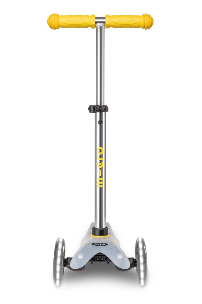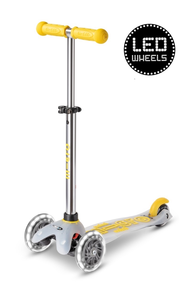 Micro Mini Deluxe is the world's most highly rated and recommended scooter for children aged 2-5. This scooter has won the Toy of the Year award for several years and is one of the lightest scooters on the market! The Deluxe designation in the scooter's name refers to the fact that the height of the handlebar is adjustable, allowing the scooter to grow with your child! The Micro Mini Deluxe Flux LED is a kick scooter designed especially for young tech enthusiasts, with a transparent deck and shiny aluminum handlebar adding style. The Mini Deluxe Flux LED is an upgraded version of the Mini Deluxe model, which, in addition to all the usual Mini Deluxe features and special design, has two LED lights on the front wheels. The scooter encourages children to get out into the fresh air, helping to develop their balance, coordination and motor skills. Micro Mini scooters have been developed in collaboration with Swiss medical professionals, specifically with the development of pre-school children in mind.