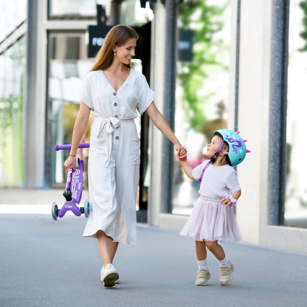 Micro Mini Deluxe is the world's most highly rated and recommended scooter for children aged 2-5. This scooter has won the Toy of the Year award for several years and is one of the lightest scooters on the market! The Deluxe designation in the scooter's name refers to the fact that the height of the handlebar is adjustable, allowing the scooter to grow with your child! The Micro Mini Deluxe foldable scooter is an upgraded version of the Mini Deluxe model, which, in addition to all the usual Mini Deluxe features, can be folded with a single simple movement if necessary. This makes the scooter easier to carry or store. The scooter encourages children to get out into the fresh air, helping to develop their balance, coordination, and motor skills. Micro Mini scooters have been developed in collaboration with Swiss medical professionals, specifically with the development of preschool children in mind.