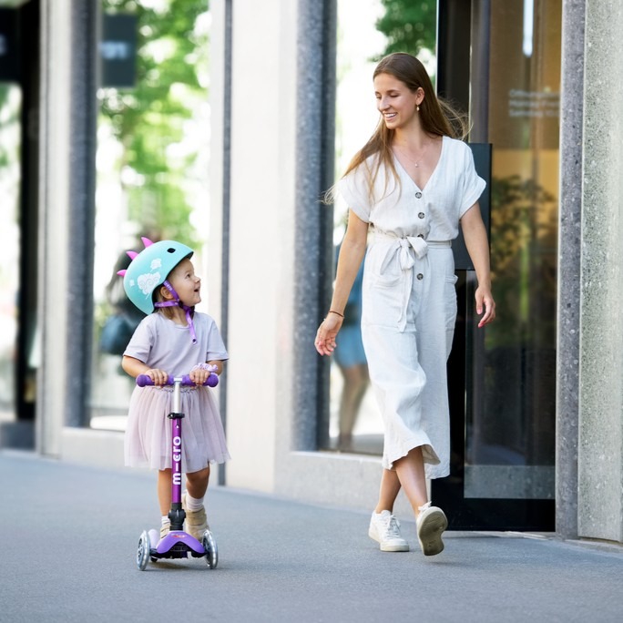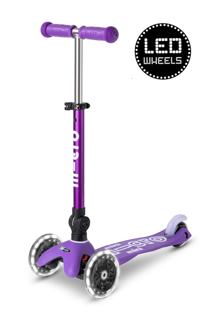Micro Mini Deluxe is the world's most highly rated and recommended scooter for children aged 2-5. This scooter has won the Toy of the Year award for several years and is one of the lightest scooters on the market! The Deluxe designation in the scooter's name refers to the fact that the height of the handlebar is adjustable, allowing the scooter to grow with your child! The Micro Mini Deluxe LED foldable scooter is an upgraded version of the Mini Deluxe model, which, in addition to all the usual Mini Deluxe features, has two LED lights on the front wheels and can be folded with a single simple movement if necessary. This makes the scooter easier to carry or store. The scooter encourages children to get out into the fresh air, helping to develop their balance, coordination and motor skills. Micro Mini scooters have been developed in collaboration with Swiss medical professionals, specifically with the development of pre-school children in mind.