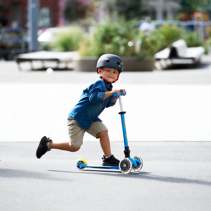 Micro Mini Deluxe is the world's most highly rated and recommended scooter for children aged 2-5. This scooter has won the Toy of the Year award for several years and is one of the lightest scooters on the market! The Deluxe designation in the scooter's name refers to the fact that the height of the handlebar is adjustable, allowing the scooter to grow with your child! The Micro Mini Deluxe LED foldable scooter is an upgraded version of the Mini Deluxe model, which, in addition to all the usual Mini Deluxe features, has two LED lights on the front wheels and can be folded with a single simple movement if necessary. This makes the scooter easier to carry or store. The scooter encourages children to get out into the fresh air, helping to develop their balance, coordination and motor skills. Micro Mini scooters have been developed in collaboration with Swiss medical professionals, specifically with the development of pre-school children in mind.