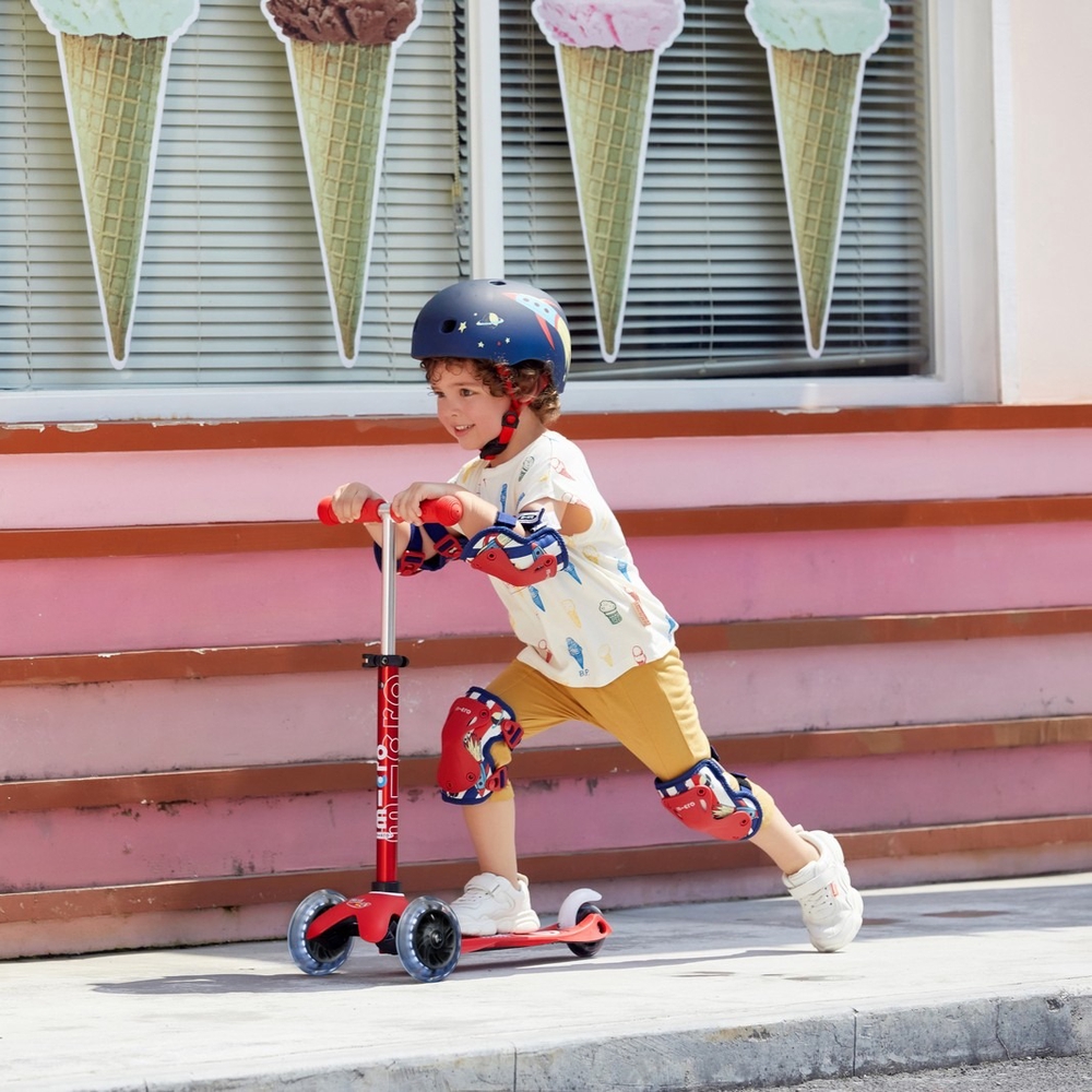Micro Mini Deluxe is the world's most highly rated and recommended balance bike for children aged 2-5. This scooter has won the Toy of the Year award for several years and is one of the lightest scooters on the market! The Deluxe designation in the scooter's name refers to the fact that the height of the handlebar is adjustable, allowing the scooter to grow with your child! The Micro Mini Deluxe LED scooter is an upgraded version of the Mini Deluxe model, which, in addition to all the usual Mini Deluxe features, has two LED lights on the front wheels. The wheels light up when the scooter is in motion thanks to a dynamo mechanism, so there is no need for batteries or rechargeable batteries. The LED lights make your child more visible in the dark and make riding more exciting for them! With this scooter, you'll shine like a star! The scooter encourages children to get out into the fresh air, helping to develop their balance, coordination, and motor skills. Micro Mini scooters have been developed in collaboration with Swiss medical professionals, specifically with the development of preschool children in mind.