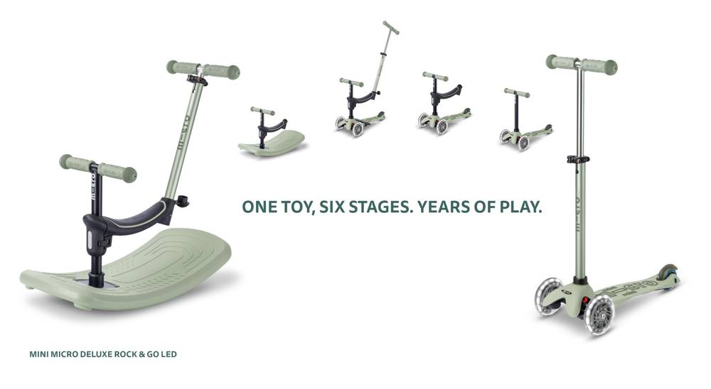 Micro Mini Deluxe Rock & Go LED children’s scooter, Olive Sage