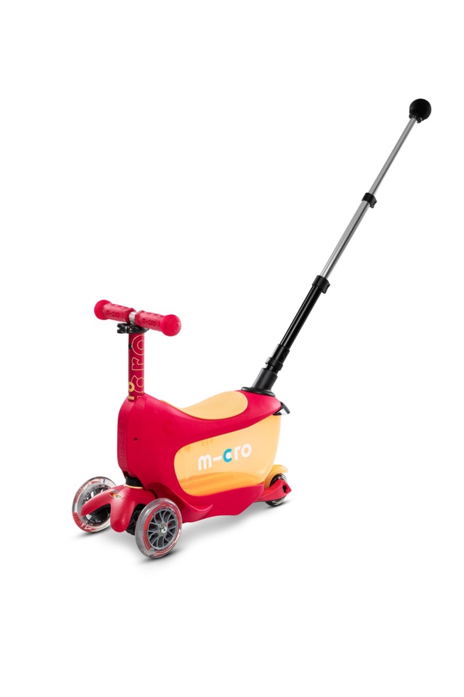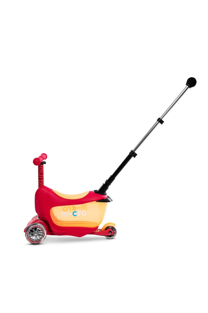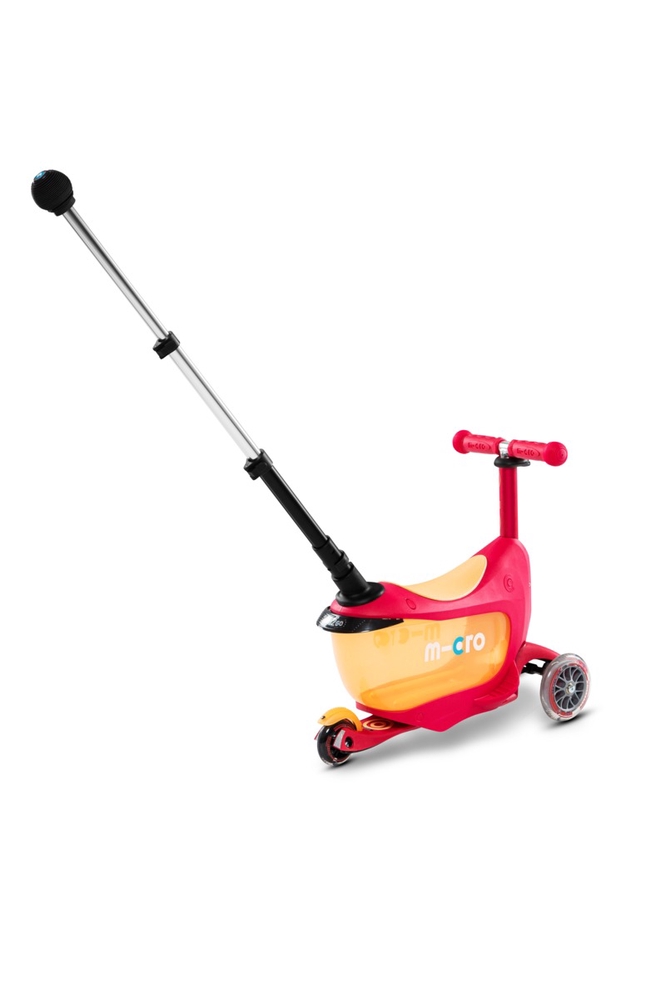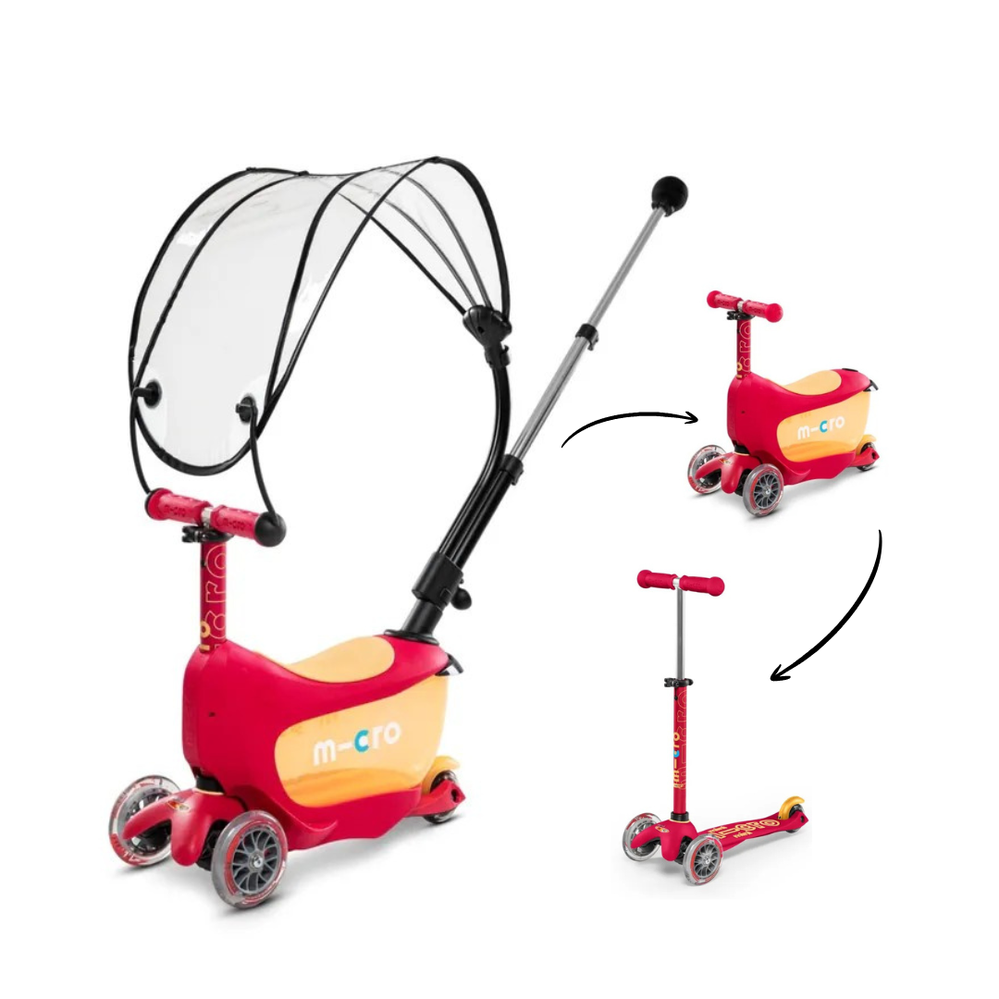The Micro Mini2Go Deluxe Plus scooter is an upgraded version of the Mini Deluxe model, suitable for children from 18 months to 5 years of age. The scooter comes with a transparent canopy that protects the child from sun and rain. The canopy is easy to remove and can be stored in the scooter's storage compartment. This multifunctional scooter grows with your child, serving as a seat, storage box, and push bar for younger children, then as a balance bike without the push bar, and finally, as the child grows, all accessories can be removed to convert the scooter into the Micro Mini Deluxe version. The storage box under the seat adds to the fun and allows the child to carry toys with them. The Plus version also comes with an adjustable push bar, which allows parents to push and steer the scooter comfortably. The push bike encourages children to get out into the fresh air, helping to develop their balance, coordination, and motor skills. Micro Mini scooters have been developed in collaboration with Swiss medical professionals, specifically with the development of preschool children in mind.