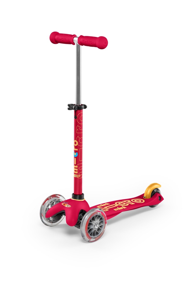 Micro Mini scooters have a unique patented steering mechanism, which means that, in addition to steering with the handlebar, the scooter can also be steered by leaning your body weight. This ensures better balance and smoother movement for small children. Thanks to the soft polyurethane wheels and durable fiberglass-reinforced deck, the ride is smooth even on bumpy roads. As the wheels do not leave marks on the floor, this scooter is also suitable for indoor use. The Micro Mini Deluxe scooter is also a very good choice when it comes to your child’s safety. The adjustable handlebar height allows the scooter to grow with your child (a handlebar that is too low can make riding dangerous for your child). The fiberglass-reinforced footboard, which is closer to the ground, and the double front wheels ensure stability. The lightweight frame, non-slip deck and easy-to-use brake make it easy for your child to control their scooter. Soft, rounded edges help prevent injuries and make the scooter more comfortable for your child to ride. The T-shaped handlebar is securely attached and can be removed by parents if necessary by pressing a button under the standing board. This makes the scooter easier to store or transport when necessary. Micro scooters are very durable and can be enjoyed by at least 3-4 children in a row. If necessary, wear parts (wheels, handles, brakes) can be replaced or the appearance of the scooter can be updated with various accessories designed for scooters (bell, bottle holder, basket, etc.).