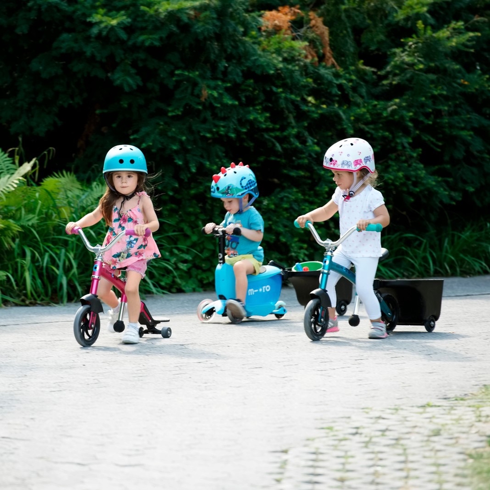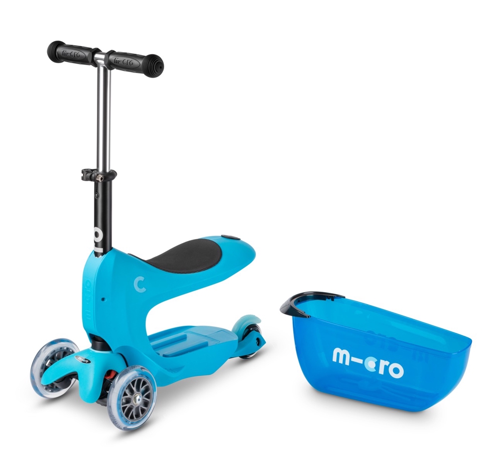 The Micro Mini2Go Deluxe balance bike is an upgraded version of the Mini Deluxe model, suitable for children from 18 months to 5 years of age. This multifunctional balance bike grows with your child, serving as a running bike with a seat and storage box for smaller children. The storage box under the seat adds a playful touch and allows children to carry their toys with them. As the child grows, the seat and storage box can be removed from the scooter, turning it into a regular Micro Mini Deluxe version. The scooter encourages children to get out into the fresh air, helping to develop their balance, coordination, and motor skills. Micro Mini scooters have been developed in collaboration with Swiss medical professionals, specifically with the development of preschool children in mind.