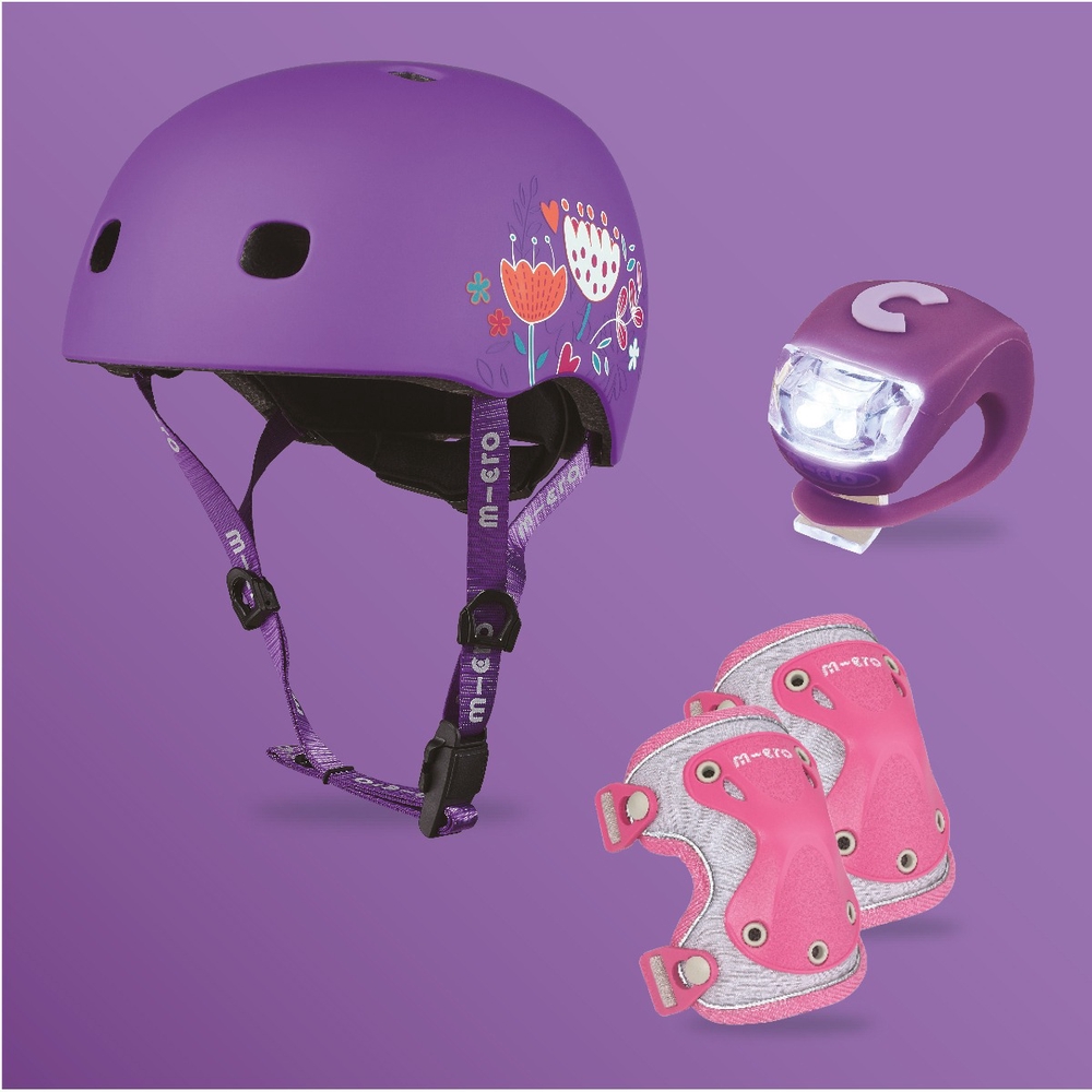 Micro knee and elbow pads protect children in the event of a fall. The pads are waterproof, ergonomic, and comfortable.