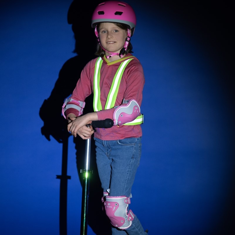 Micro knee and elbow pads, pink with reflectors