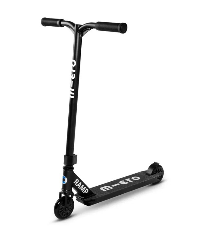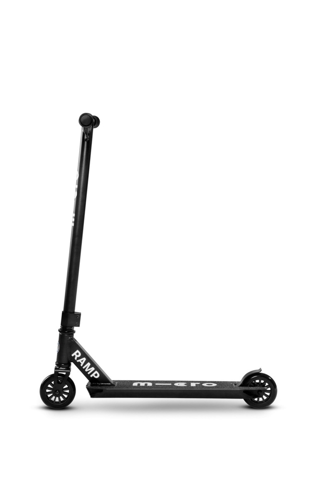 With the Micro Ramp stunt scooter, you can perform tricks in the skate park and ride on asphalt in your free time. The scooter is compact and lightweight (weighing 3.7 kg), and its wider handlebar ensures better control for beginners performing tricks. The handlebar rotates 360°. The Micro Ramp stunt scooter has a reinforced, one-piece chrome steel handlebar, a non-slip concave aluminum deck, and a highly durable steel footboard brake. The metal core wheels with ABEC 9 bearings ensure a fast and smooth ride both in the skate park and outside of it.