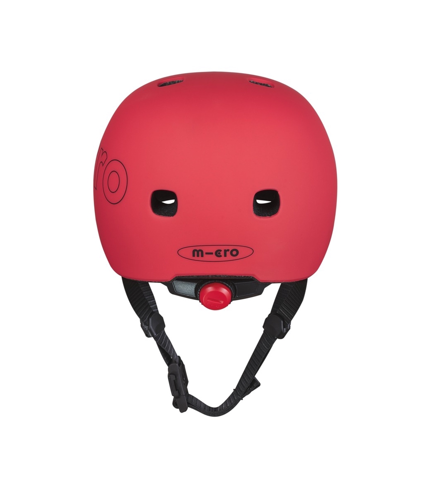 The Micro Red helmet is made of lightweight EPS foam for maximum protection, surrounded by a strong polycarbonate outer protective layer using In-Mold technology.nbsp;The size of the helmet can be adjusted by turning the red knob at the back. Pressing the red button turns on the integrated LED light.