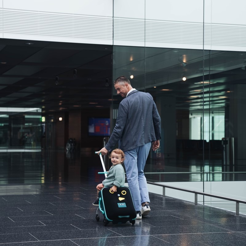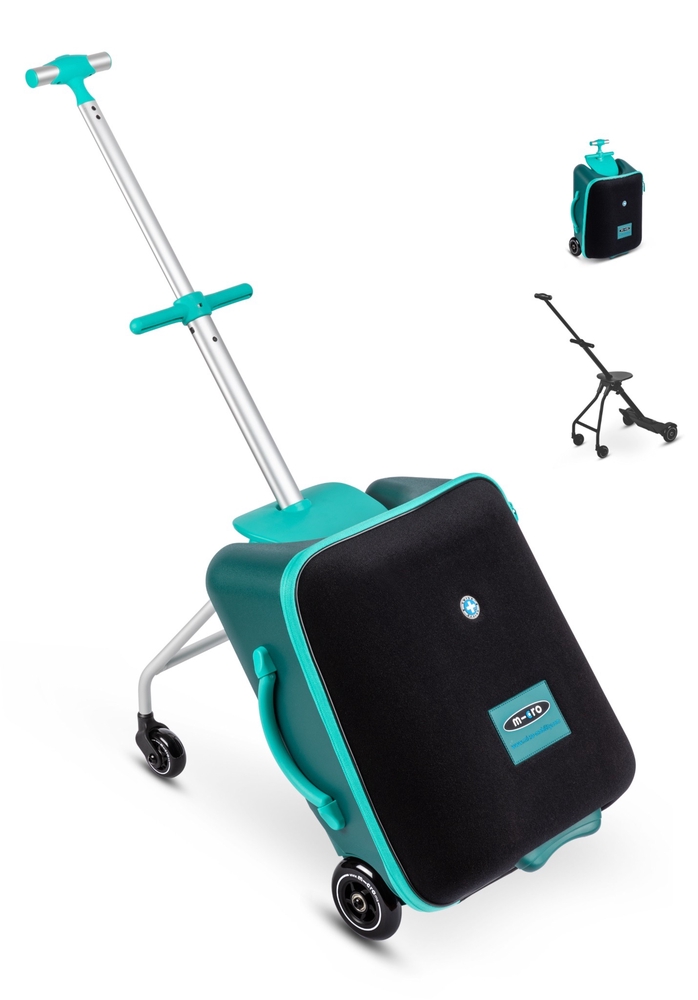 Micro Ride On Luggage Eazy is a smart 3-in-1 travel companion that makes traveling with children much easier and more fun! It can be used as hand luggage, as luggage that can be pulled behind your child, and as a lightweight stroller. The integrated child seat allows your child to ride comfortably with you in the suitcase, so you don't need to bring an extra stroller. The travel suitcase is designed in Switzerland and made from only the highest quality materials. The suitcase moves smoothly and quietly and is perfect for both family trips and shopping trips.