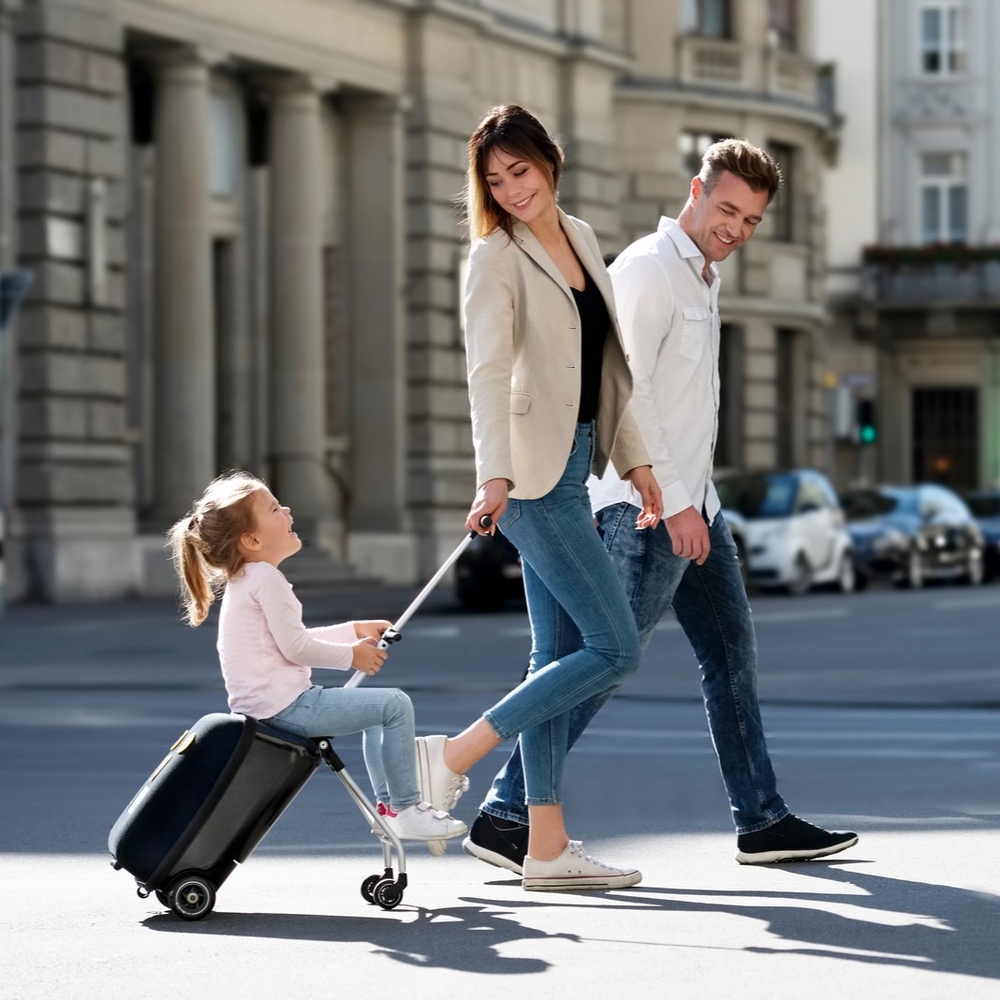 Micro Ride On Luggage Eazy is a smart 3-in-1 travel companion that makes traveling with children much easier and more fun! It can be used as hand luggage, as luggage that can be pulled behind your child, and as a lightweight stroller. The integrated child seat allows your child to ride comfortably with you in the suitcase, so you don't need to bring an extra stroller. The travel suitcase is designed in Switzerland and made from only the highest quality materials. The suitcase moves smoothly and quietly and is perfect for both family trips and shopping trips.