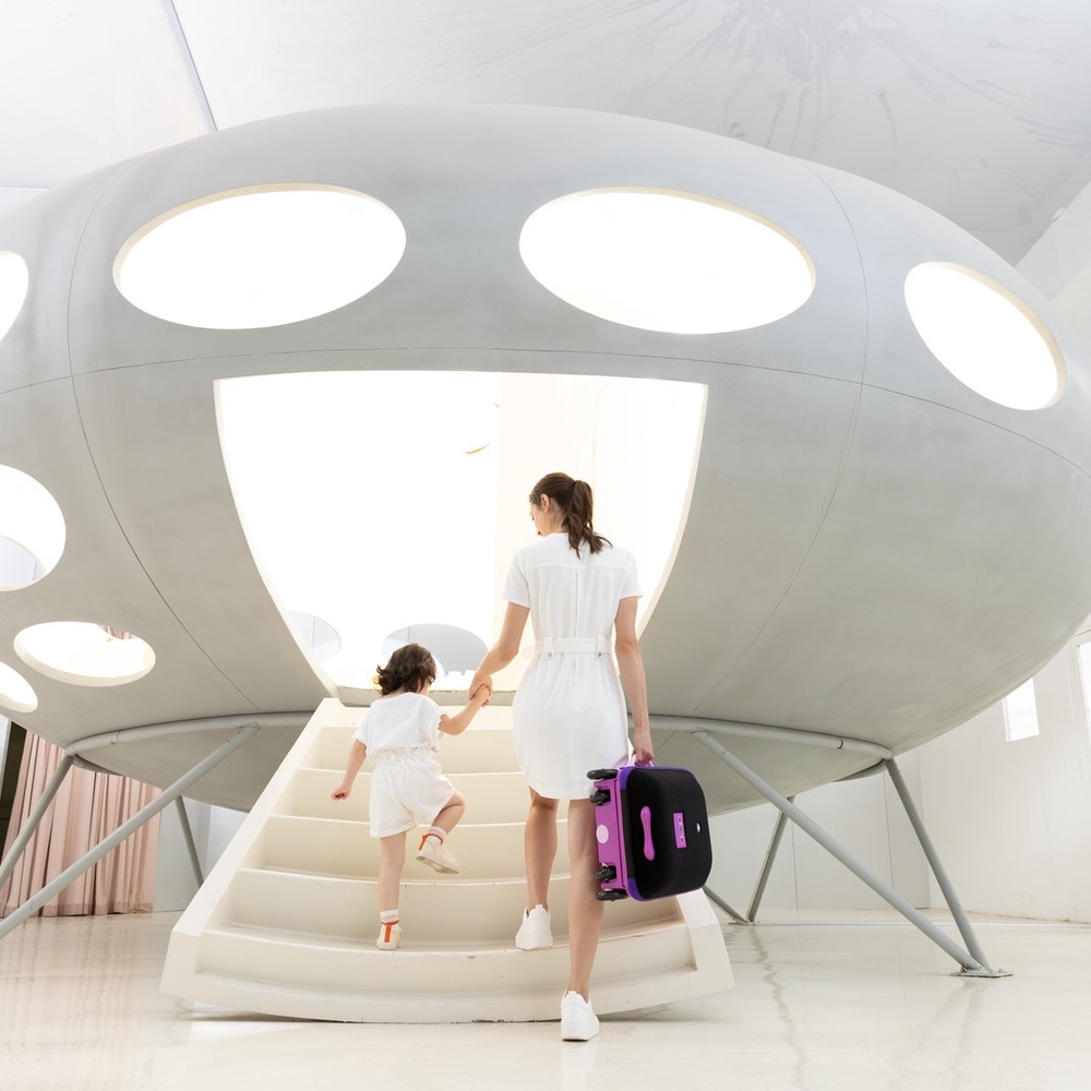 Micro Ride On Luggage Eazy is a smart 3-in-1 travel companion that makes traveling with children much easier and more fun! It can be used as hand luggage, as luggage that can be pulled behind your child, and as a lightweight stroller. The integrated child seat allows your child to ride comfortably with you in the suitcase, so you don't need to bring an extra stroller. The travel suitcase is designed in Switzerland and made from only the highest quality materials. The suitcase moves smoothly and quietly and is perfect for both family trips and shopping trips.