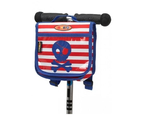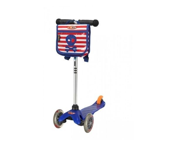 Micro backpack for attaching to a scooter and carrying snacks or other important items for children.