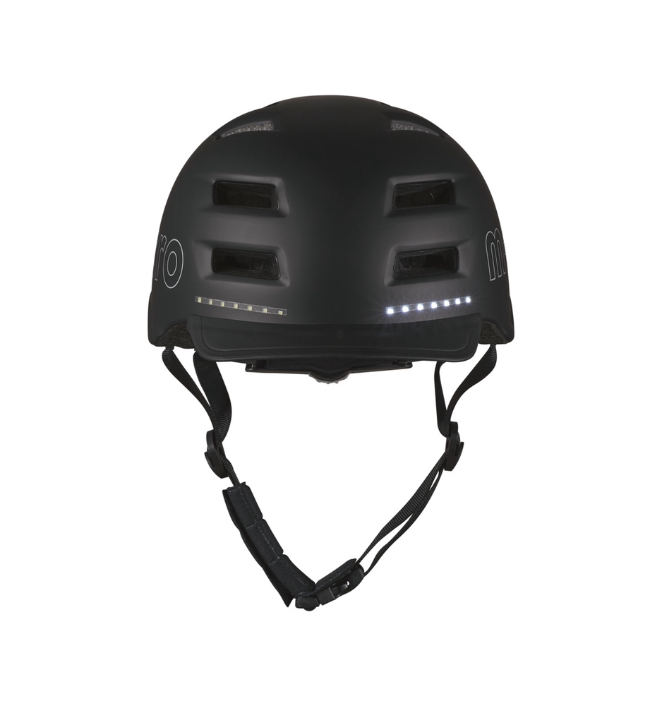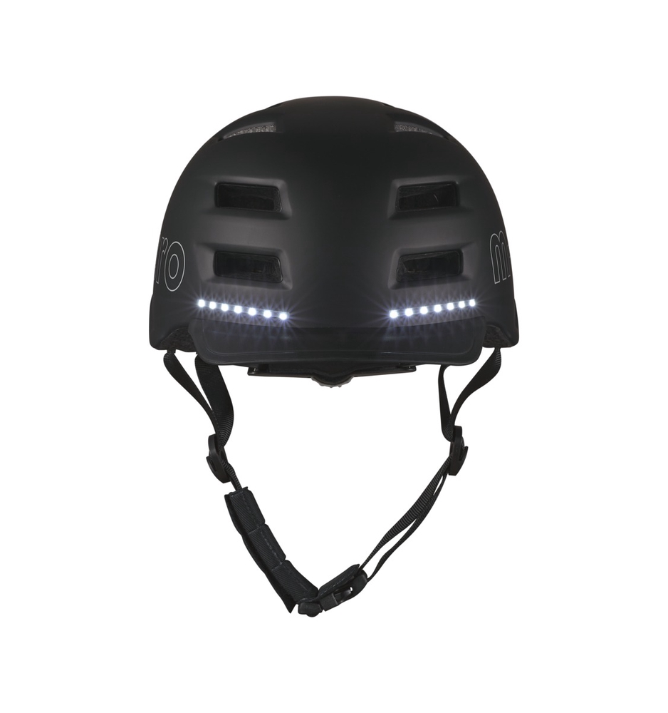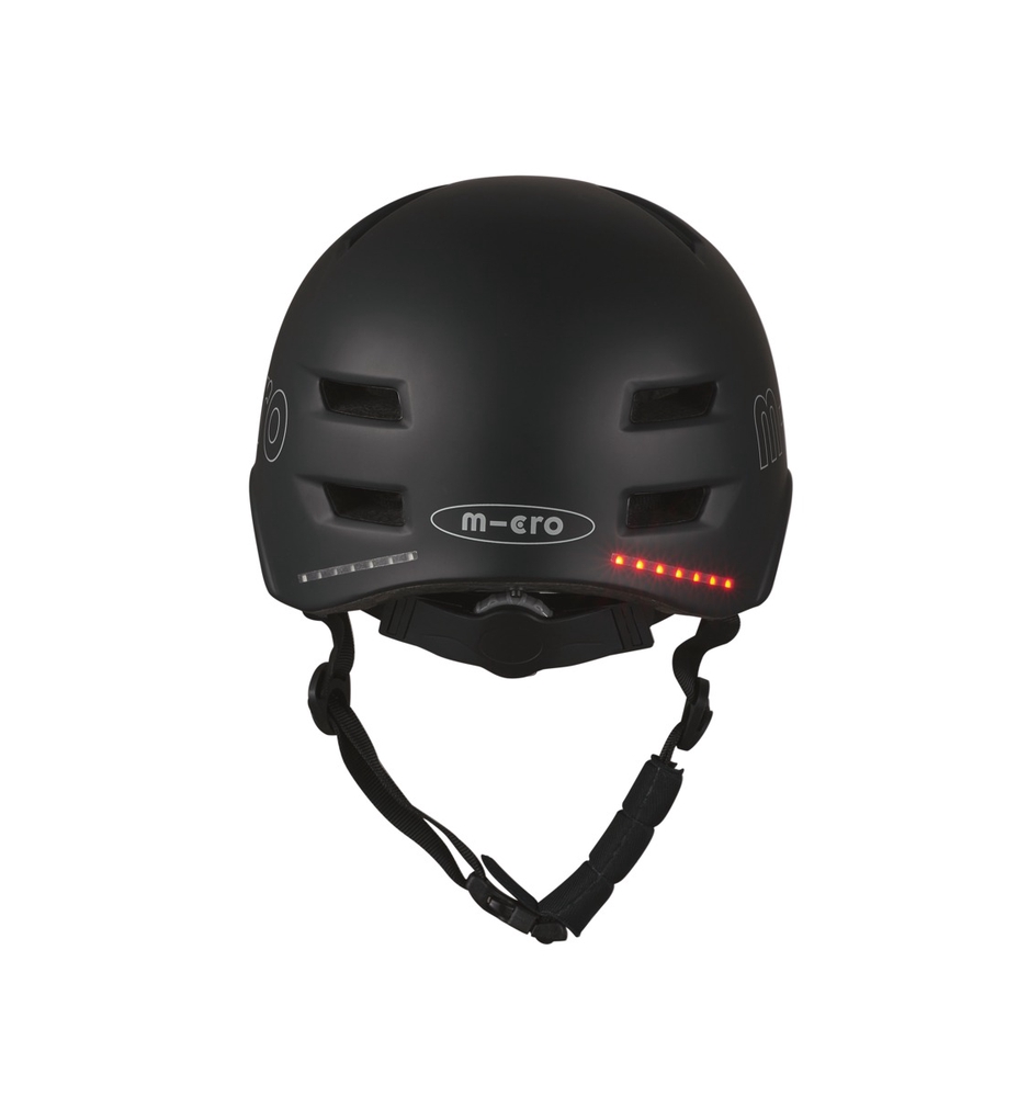 The Micro Smart helmet makes cycling even safer thanks to the LED light system integrated into the front and back of the helmet, which not only illuminates and makes the rider more visible, but also functions as a brake and turn signal.
