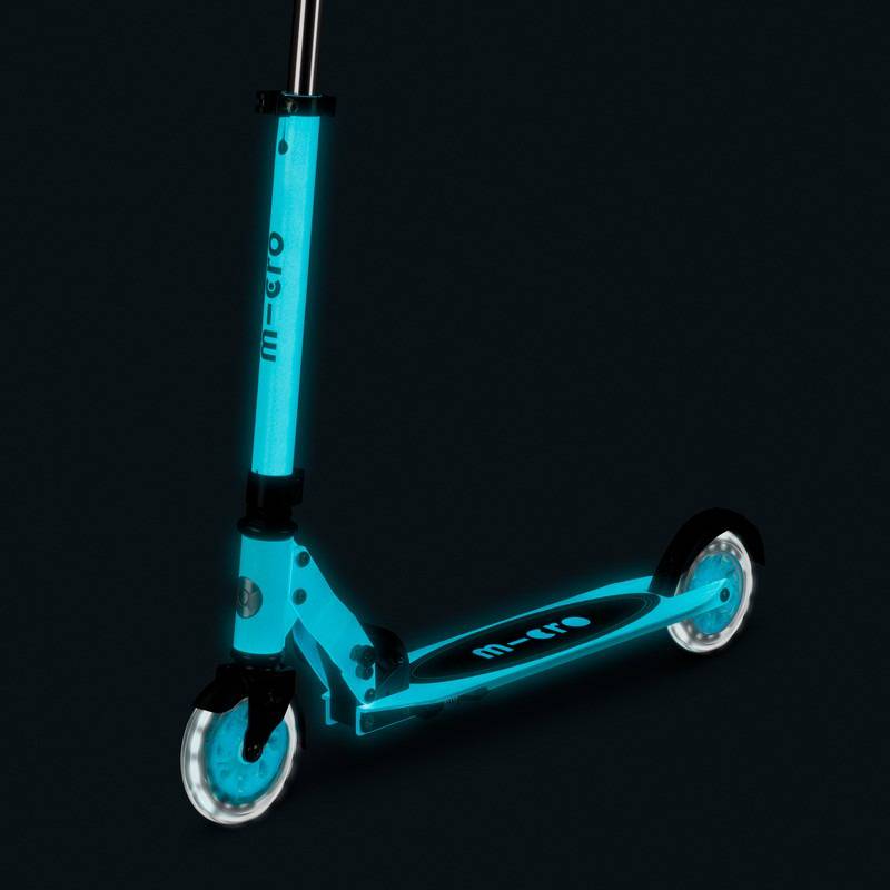 Micro Sprite LED lights light up when the scooter is in motion thanks to a dynamo mechanism, so there is no need for batteries or rechargeable batteries. nbsp;