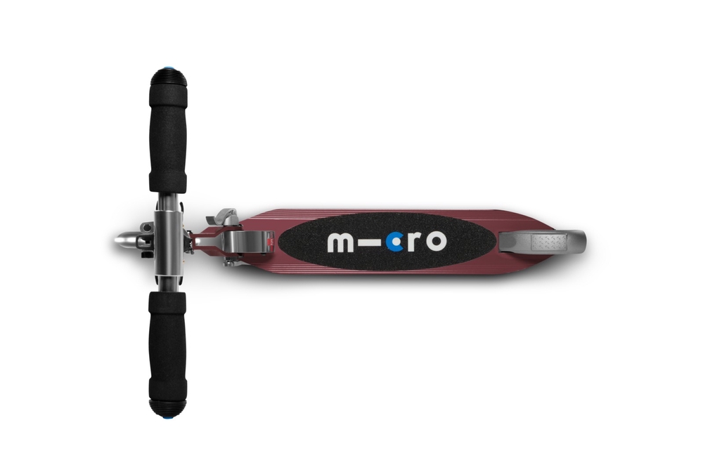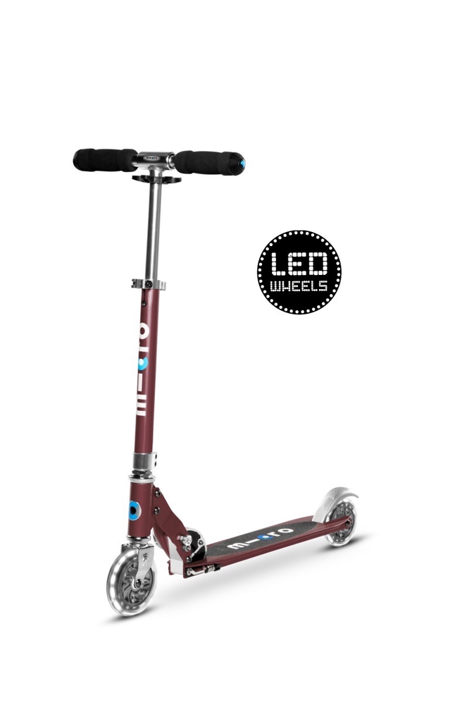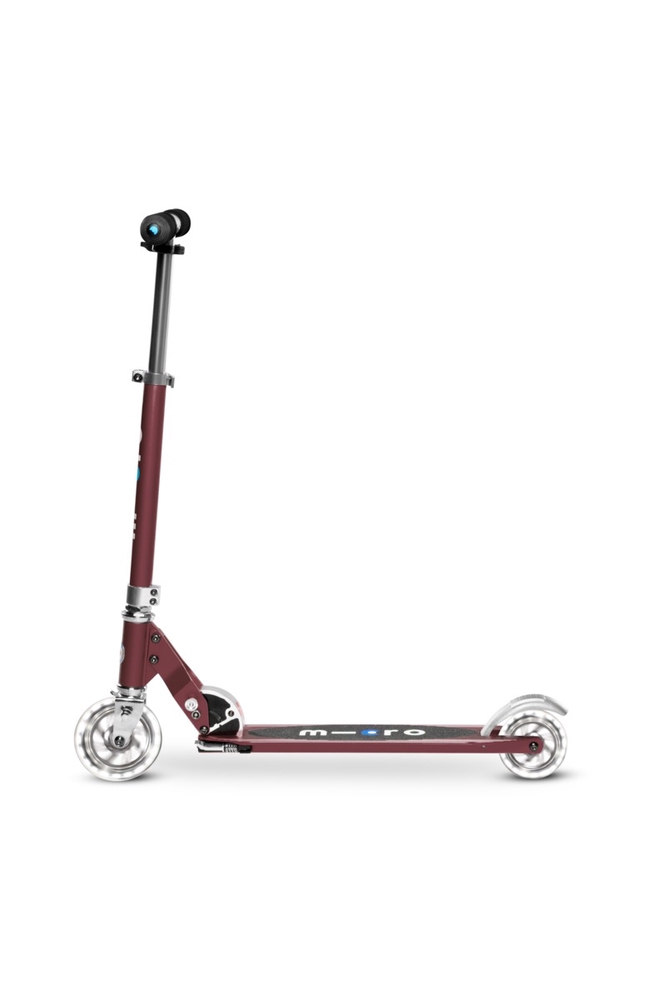 Micro SpriteLED is a compact and lightweight scooter (weighing approx. 2.85 kg) that can be easily folded and carried. It has a durable aluminum frame and an adjustable handlebar. It is well suited for riding on asphalt. Due to its smaller wheels, it is not as well suited for riding on roads with poor surface conditions. It is easier to ride on such roads with a Micro Cruiser scooter, for example, whose larger wheels overcome obstacles more smoothly.
