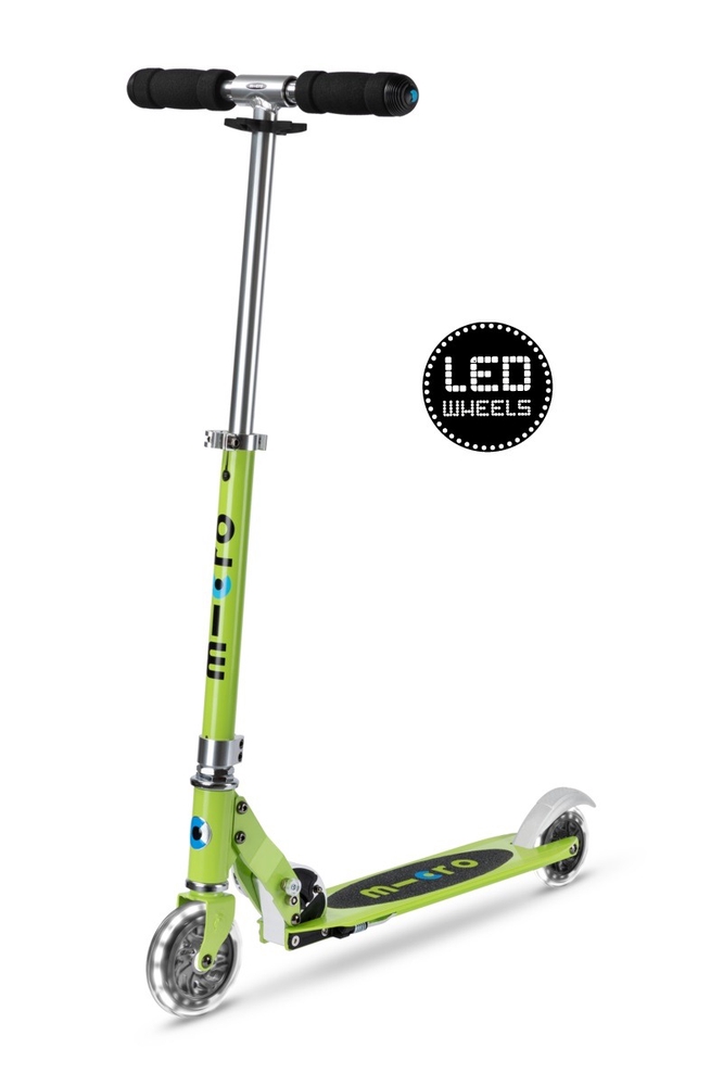 Micro Sprite LED lights light up when the scooter is in motion thanks to a dynamo mechanism, so there is no need for batteries or rechargeable batteries. nbsp;