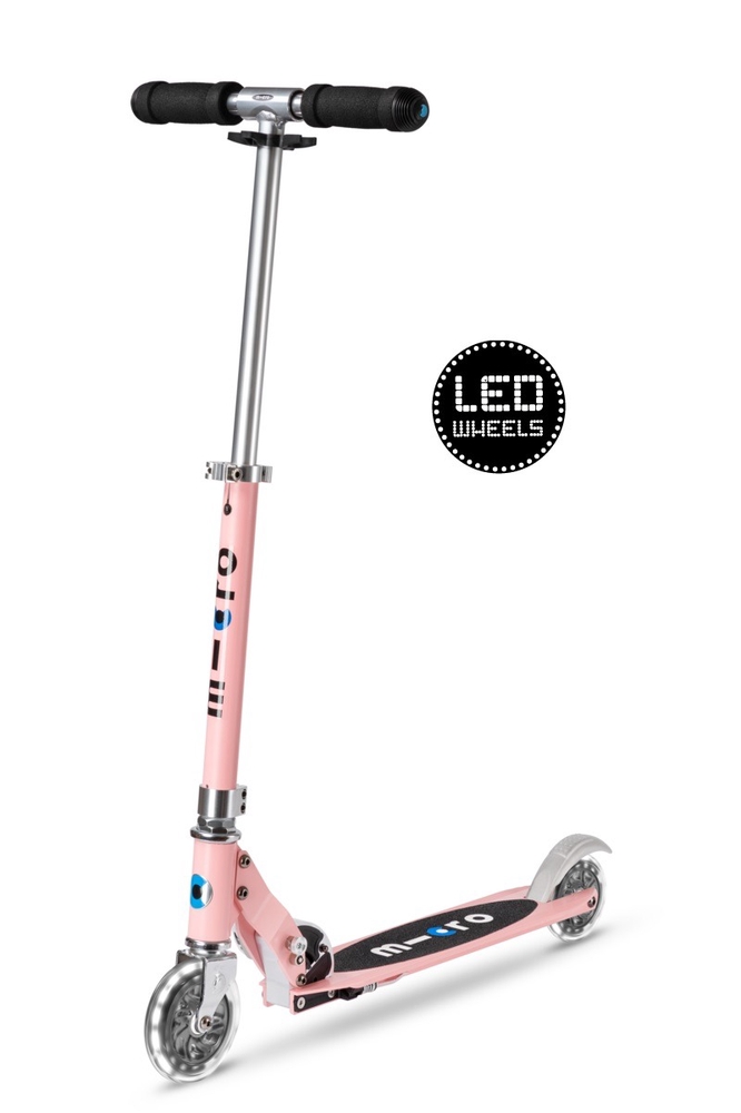 Micro Sprite LED lights light up when the scooter is in motion thanks to a dynamo mechanism, so there is no need for batteries or rechargeable batteries. nbsp;