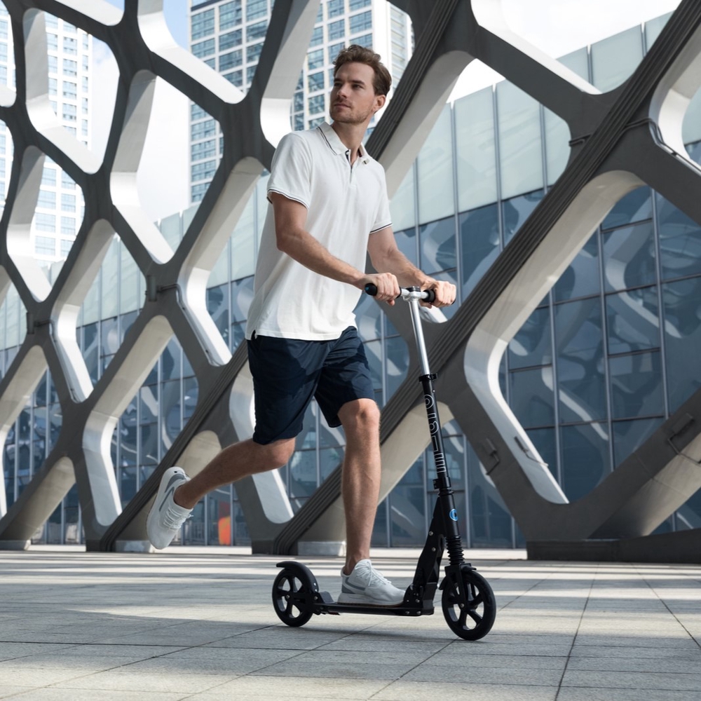 Micro Suspension scooters aremuch more comfortable and smoother to ride on uneven surfaces thanks to its large wheels and front and rear suspension – fewer bumps and vibrations! The large wheels (200 mm) roll faster and overcome obstacles more smoothly.
