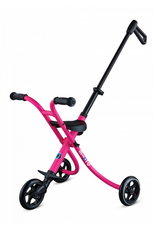 The Micro Trike XL is like a stroller that can be pushed by a parent. It is very lightweight and extremely easy to fold and unfold. The footrest is height adjustable. The larger wheels and rounder shape of the Trike XL version ensure better dynamics and greater riding comfort.