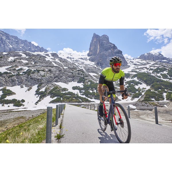 A cycling jersey suitable for competition and training. The ergonomic cut at the shoulders provides the comfort needed for riding. The jersey is very breathable and ideal for hot weather.