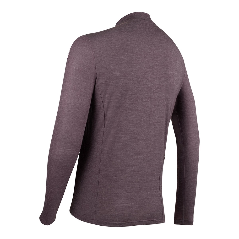 A long-sleeved jersey made from wool and polyester. It has a short half-length zipper. The Wool LS shirt can be worn under outer layers, providing warmth and quick drying.
