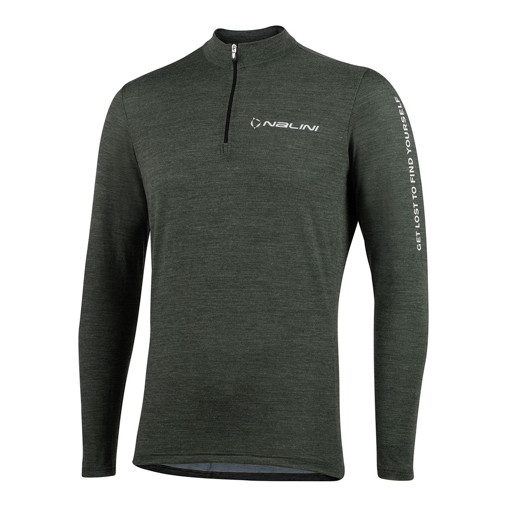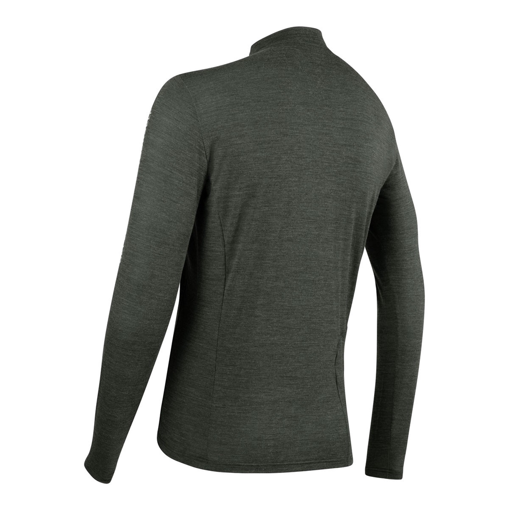 Long-sleeved jersey made from wool and polyester. It has a short half-length zipper. The Wool LS shirt can be worn under outer layers, providing warmth and quick drying.