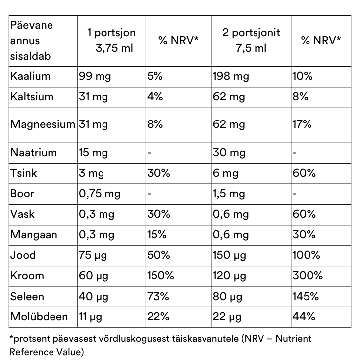 Spetsifikatsioon tootele RnA ReSet ReMyte Mineral Solution 480ml (Supplement with 12 Mineral Concentrate):