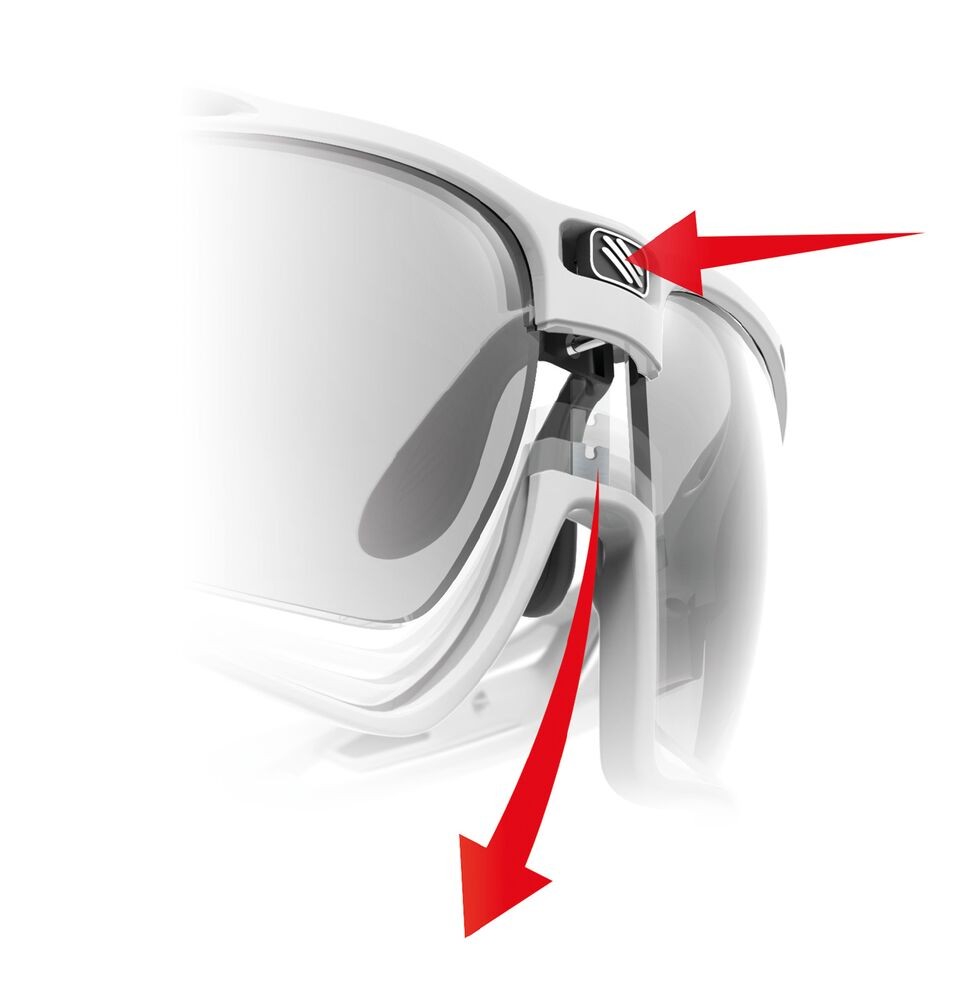 The innovative Push Release lens replacement system allows you to quickly replace one pair of lenses with another when weather conditions change. To do this, press the Rudy logo in the center of the glasses to open the frame. The glasses have additional air vents that increase air circulation and ensure maximum aerodynamic effect without compromising visual clarity.