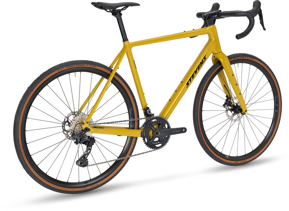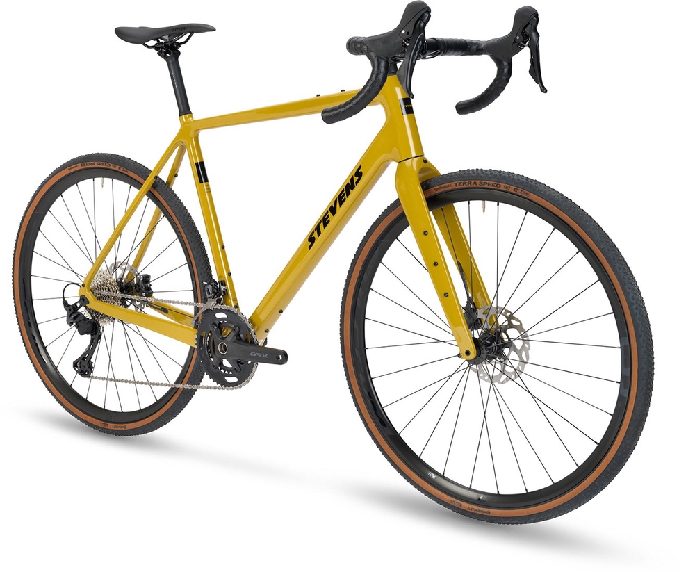 The Stevens model name “Camino” means “path” in Spanish – a very fitting name for a lively gravel bike. In addition to its name, this bike is exciting thanks to its fully integrated cables, integrated saddle clamp, and all kinds of attachment points for hiking gear. All of this is enclosed in a Carbon SL Fiber carbon frame, which is very comfortable to ride and offers enough space for tires up to 45 mm wide. The bike’s geometry is neither too lazy nor too aggressive – it’s just right, allowing you to cover long distances with ease without compromising on aerodynamics.