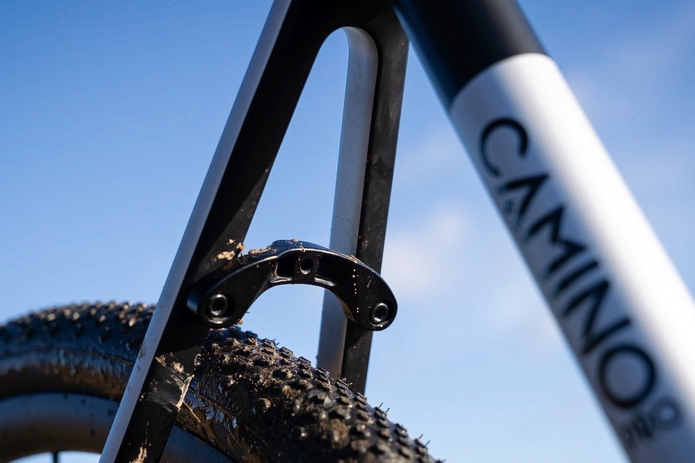 Special adapter for the Stevens Camino model series that allows you to attach a rear mudguard to the bike.