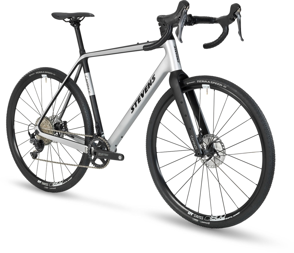 The name of the Stevens model, “Camino,” means “path” in Spanish—a very fitting name for a cool gravel bike. In addition to its name, this bike is exciting because of its fully integrated cables, integrated saddle clamp, and all kinds of attachment points for hiking gear. All of this is enclosed in a Carbon SL Fiber carbon frame, which is very comfortable to ride and offers enough space for tires up to 45 mm wide. The bike’s geometry is neither too lazy nor too aggressive – it’s just right, allowing you to cover long distances with ease without compromising on aerodynamics.