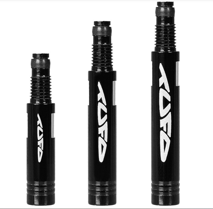 Tufo valve extension To use, remove the valve core, screw the valve extension in its place, and then place the valve core on the end of the extension. Sold individually. Length: 21 mm. 31 mm.