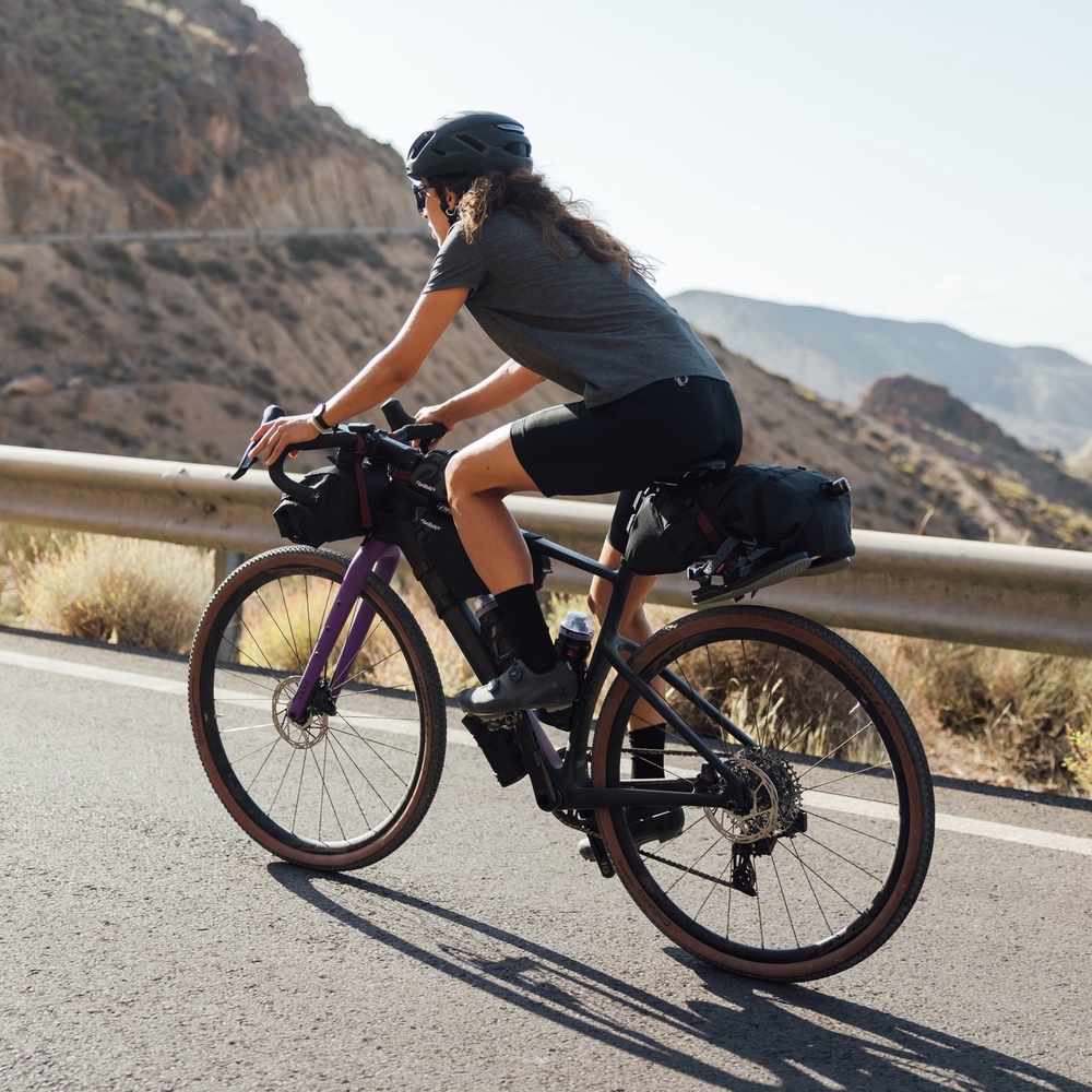 Adlar is the newest member of the Wilier road bike family, seeing the light of day in 2024. This model is entirely dedicated to bikepacking, offering a comfortable, more upright riding position and original 47 mm wide tires. The bike is designed to carry up to 35 kg of extra weight, so that cyclists can take everything they need with them without any worries! The front end of the Adlar allows the fork to be replaced with a 40 mm travel suspension fork without changing the geometry; The existing front fork allows the use of a dynamo front hub, and its cable can be routed through the right fork tube for complete integration. The desire to use a dropper post has also been taken into account – the existing seat post can be replaced with a 27.2 mm diameter dropper post of your choice. The Adlar frame is designed for a 1x drivetrain, which means that the front derailleur mount has been completely eliminated, but for a very clever reason – the frame’s seat tube is shaped to be flat and wide enough to function as an integrated mudguard!