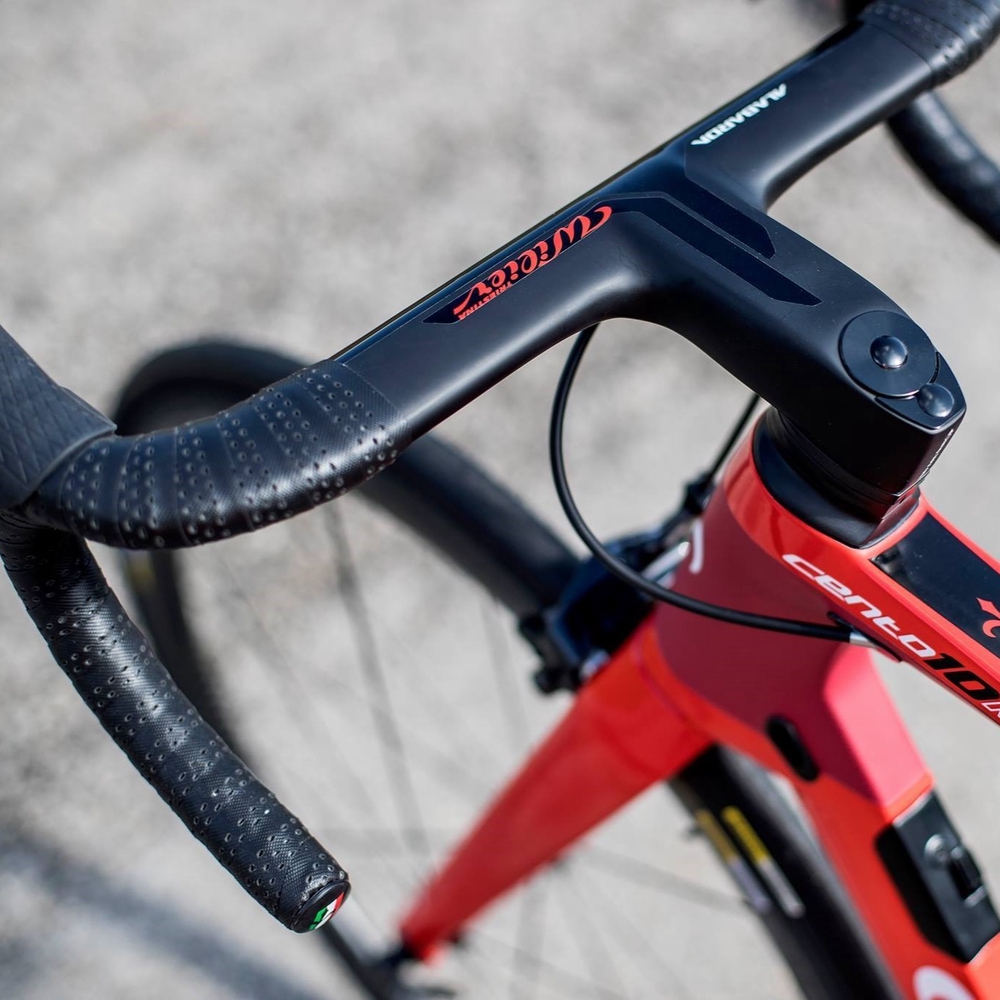 The Wilier Alabarda one-piece carbon handlebar is lightweight, stiff, and aerodynamic. Its design makes it the ideal partner for the Cento10 model, further enhancing the bike’s excellent characteristics. With special adapters, the handlebar can also be fitted to other Wilier models.